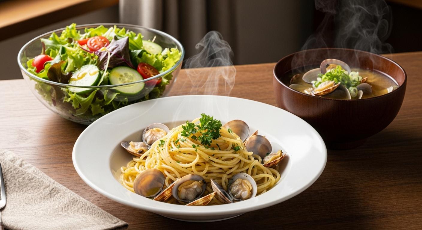 摩訶不思議食堂のボンゴレビアンゴとシジミ汁のシジミセット