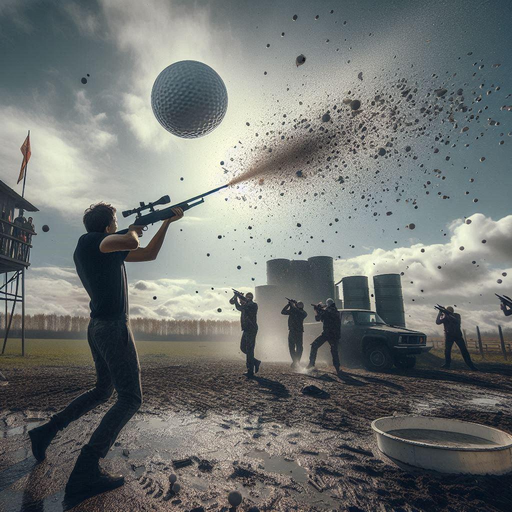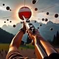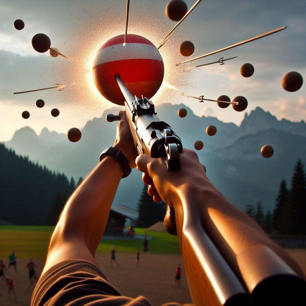 銛を発射する銃を上に向けて打ってボールを分裂させてる