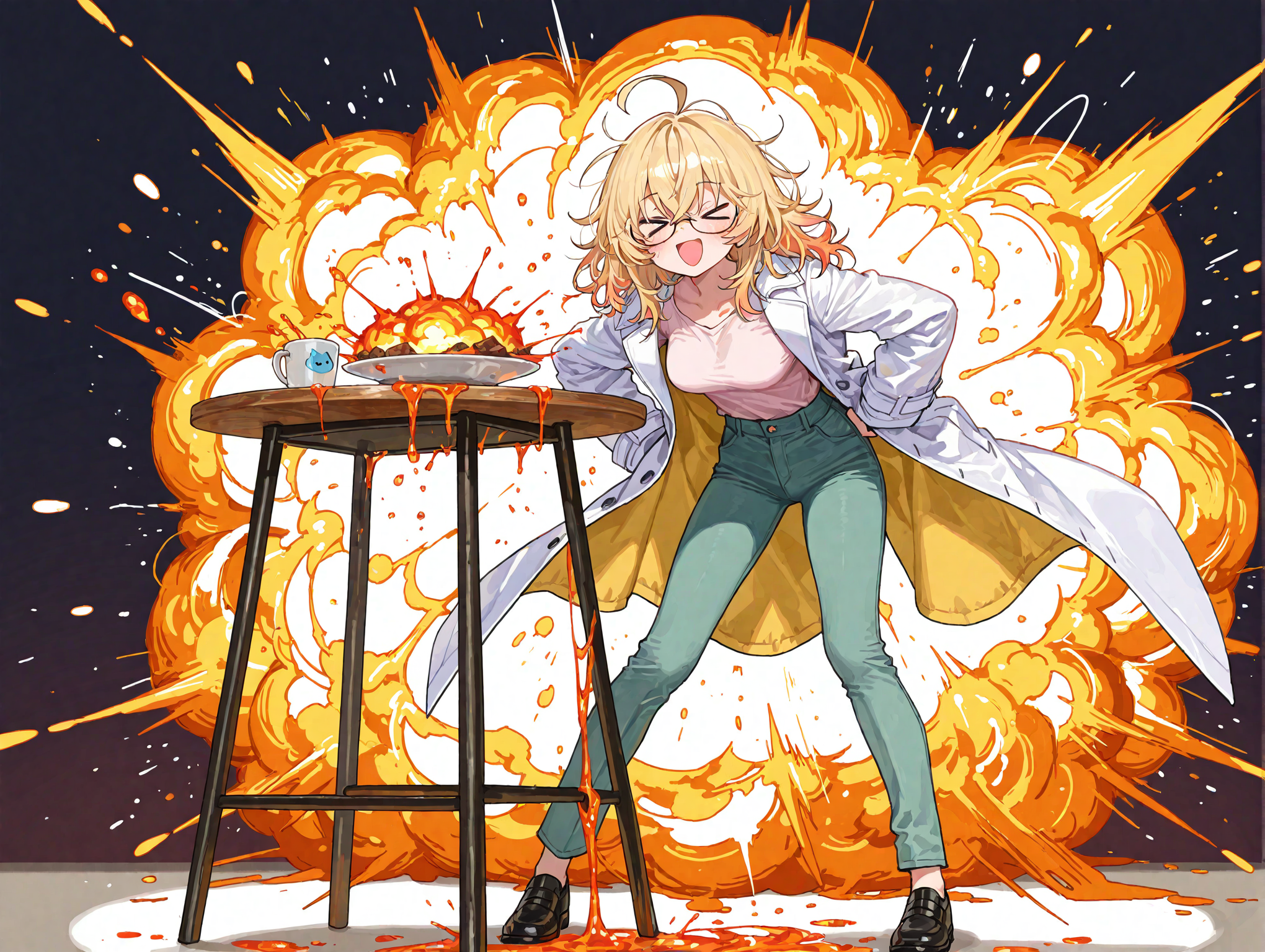 理久(エプロンと白衣の中間みたいな服装で)