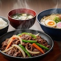 内容は、青椒肉絲、ラーメン、米飯、味噌汁で御座います。