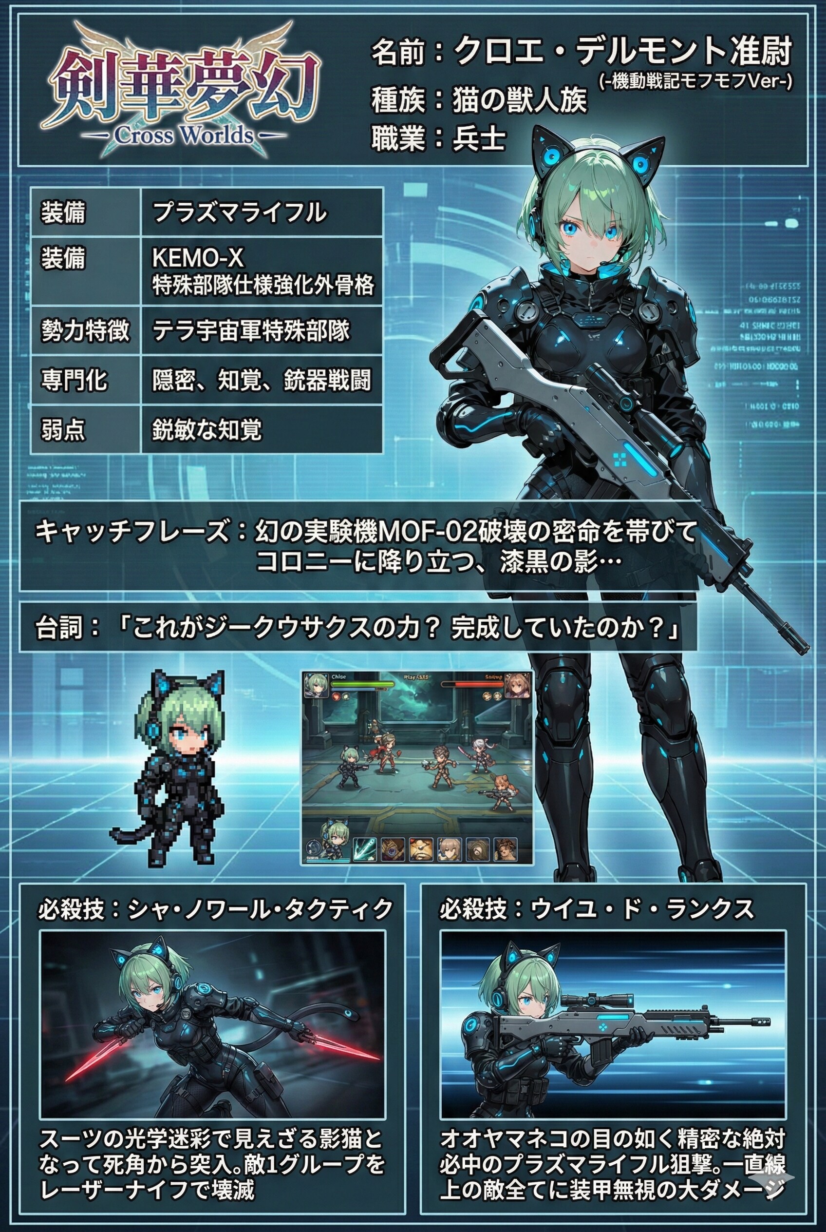 ●クロエ・デルモント准尉(役名:デル准尉) 『KEMO-X 特殊部隊仕様強化外骨格 【機動戦記モフモフ】』 https://www.chichi-pui.com/posts/e5d025d4-d5a8-46b8-a843-4e223203146b/