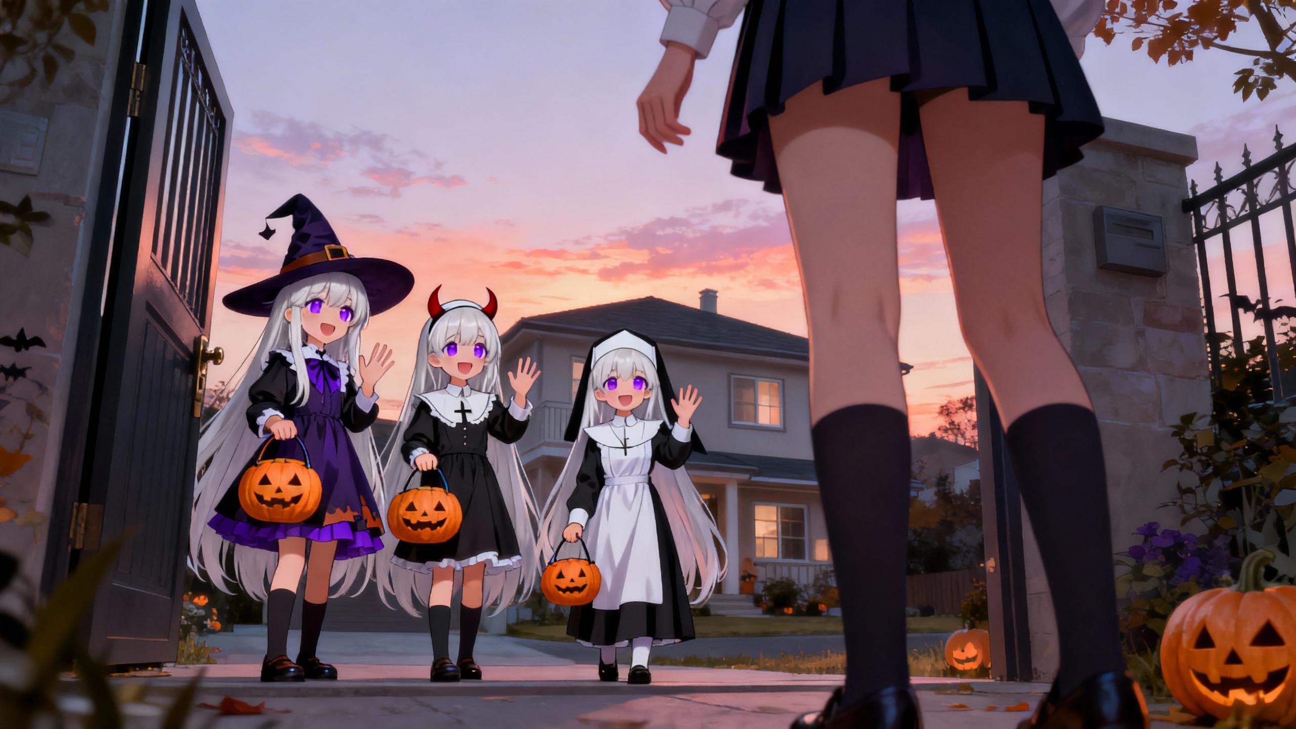 若干プロンプト&ネガティブを調整したりしてますが、基本は「トリック・オア・トリート!」と同じです。