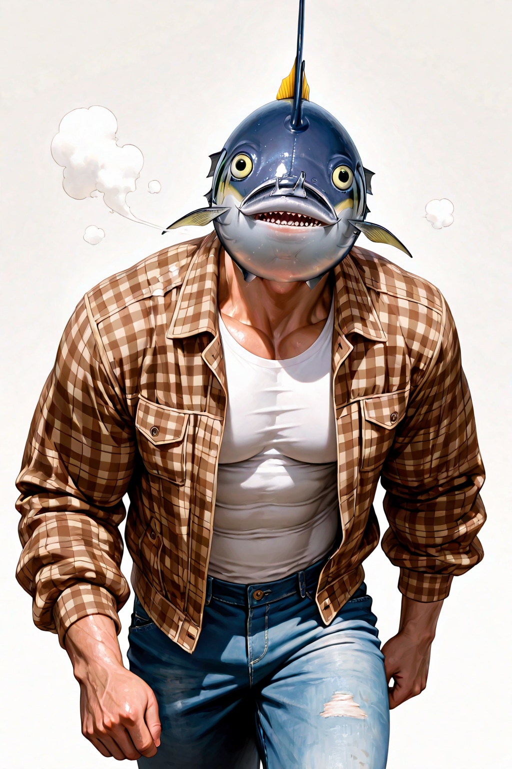 jacket partially removed, heart in eye, burnt clothes, holding fishing rod, kanji, doujin cover, pentagram, tape gag, adjusting headwear, red socks, friends, cloud print, coke-bottle glasses, oral invitation, competition school swimsuit, barbell piercing, gradient legwear, prisoner, blood on breasts, wind chime, carrying over shoulder, tape measure, flaming weapon