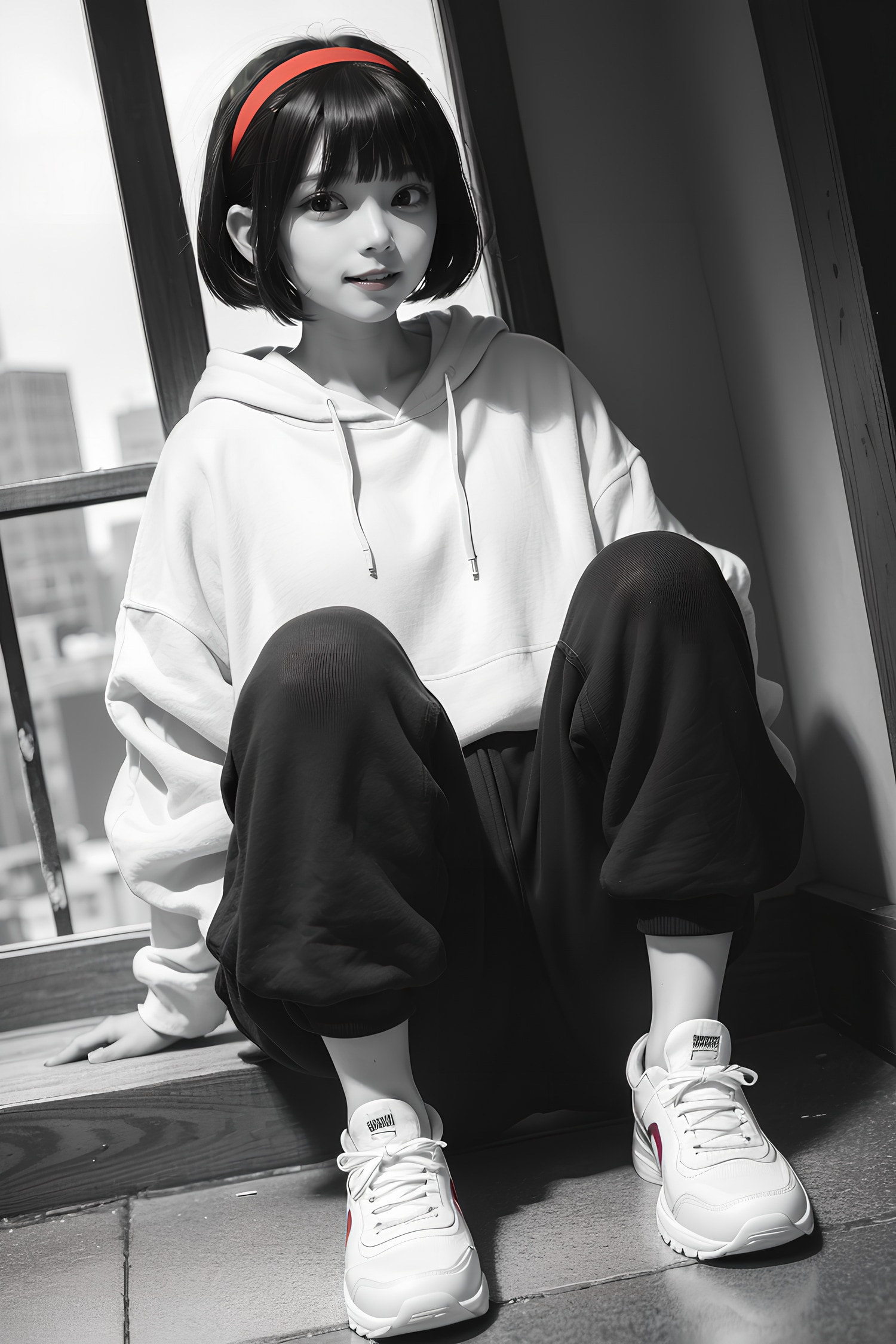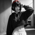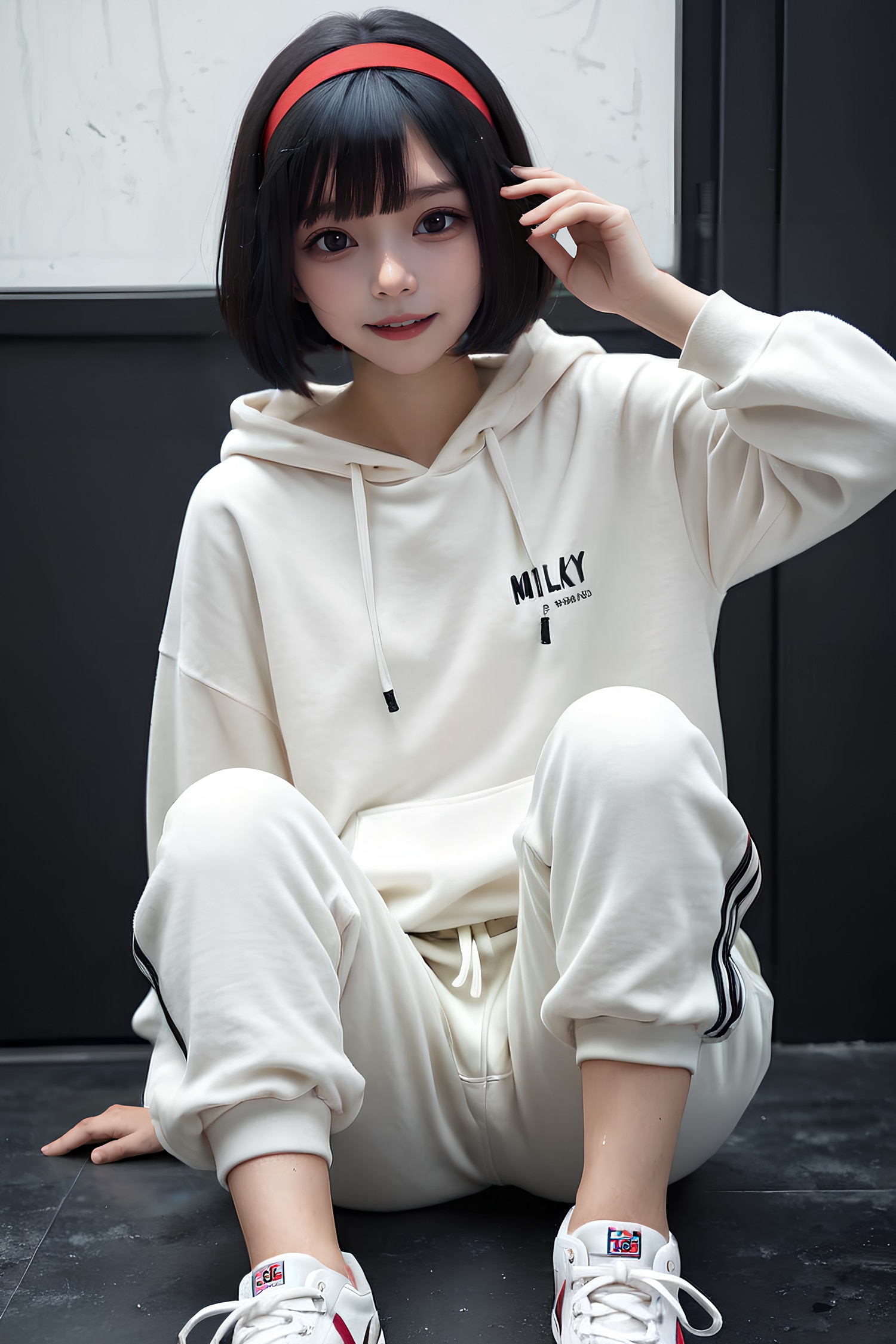 黒眼黒髪が印象づきやすくなるよう服装もモノトーンの白パーカーにしてみました。ついでに画像のトーンも落としてみたりしました。するとなんかカッコ良くなりました。ラッキー🤩