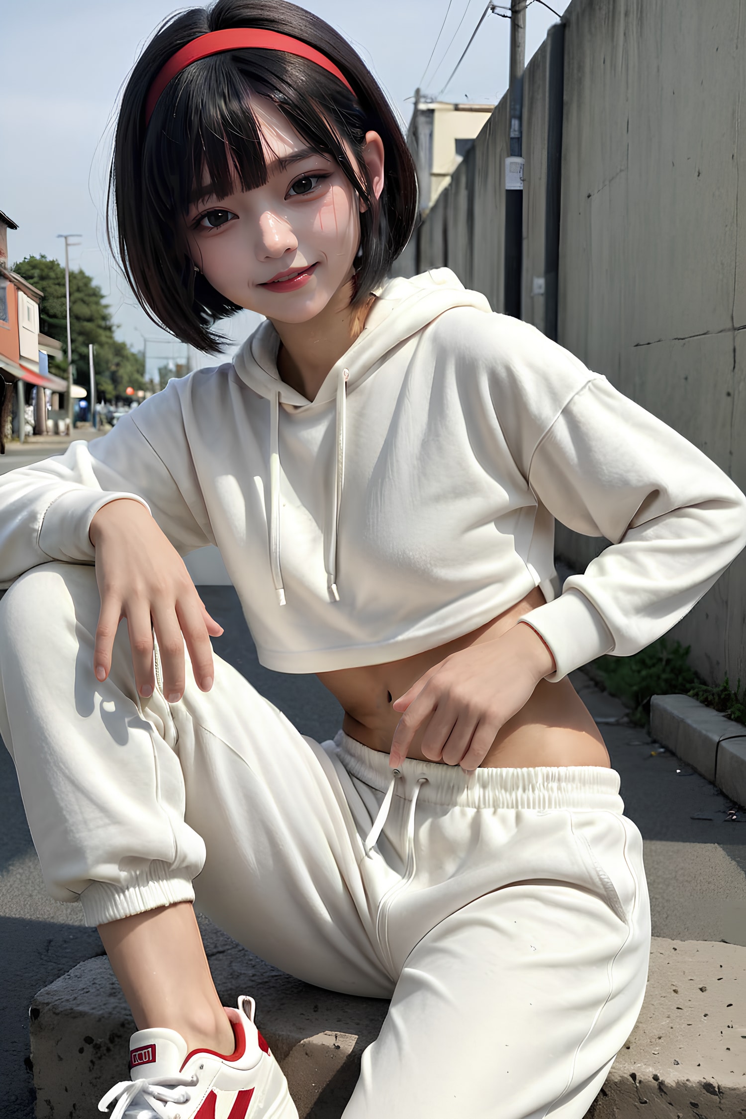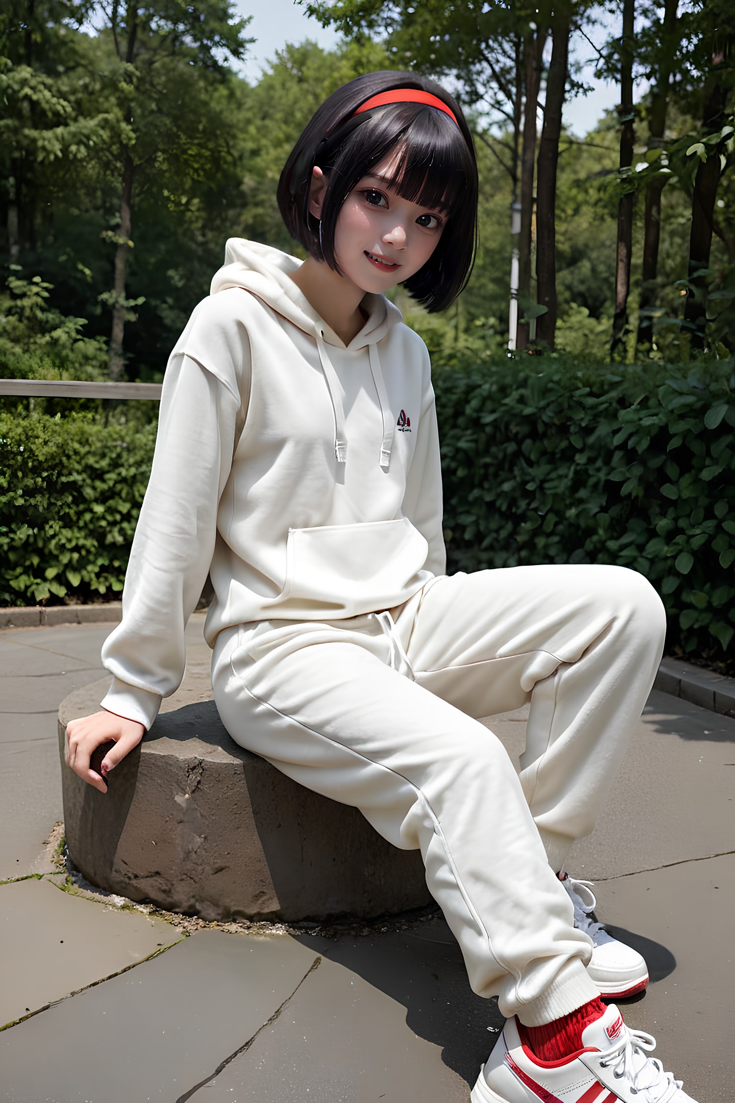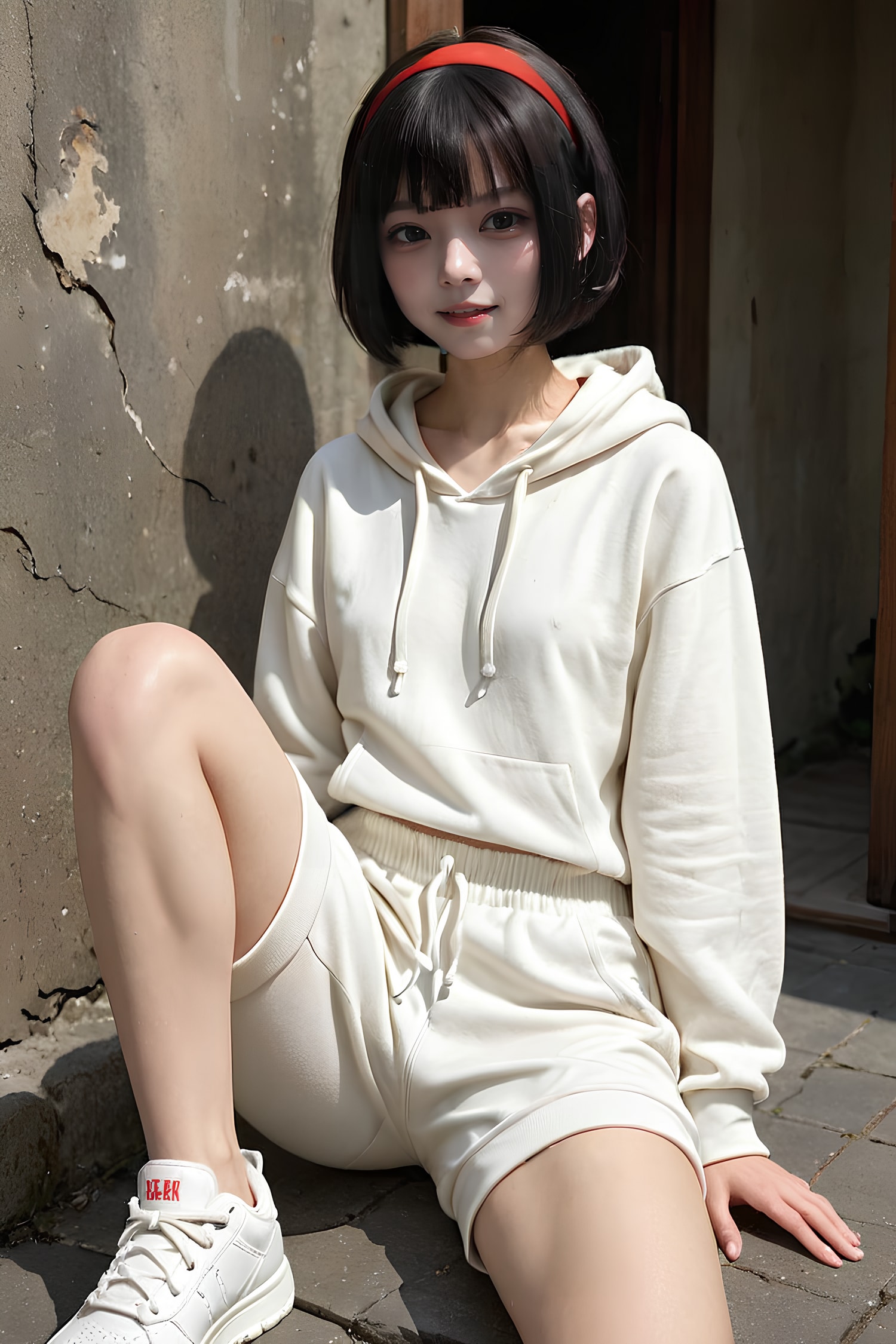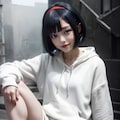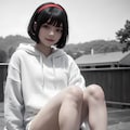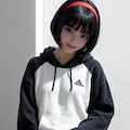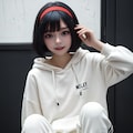 黒眼黒髪白パーカー