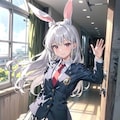 cyan motoさんのアイコンの「うさぎちゃん」をお借りして、うちの子「兎耳学園のみみちゃん」とコラボしてみました😎