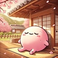 春の軒下でうたた寝している ももほうくん 🌸