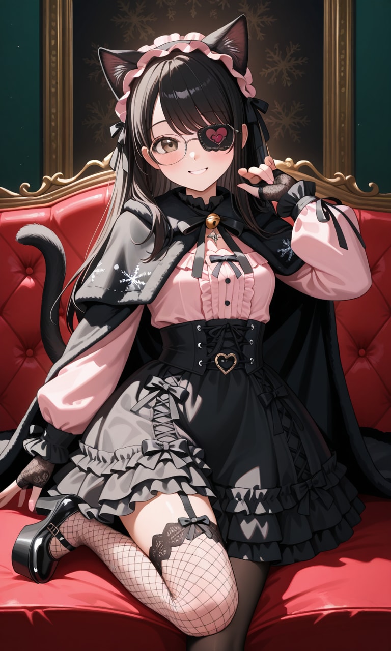 PixAI公式キャラをイメージした衣装がベースになっているゴスロリ冬ファッションをお借りしてきました。