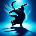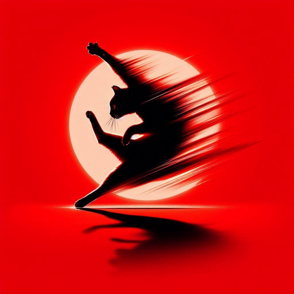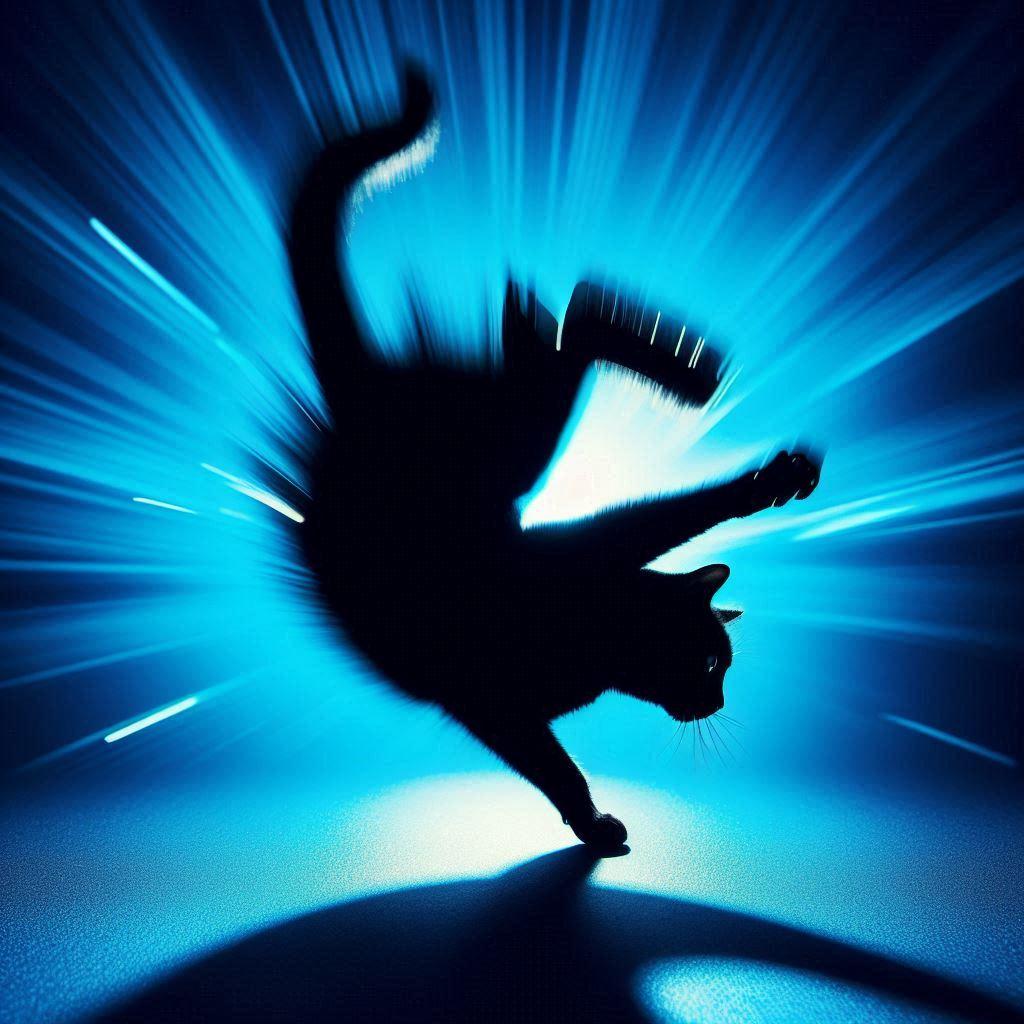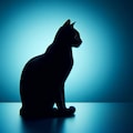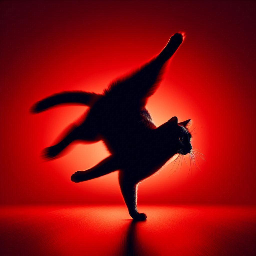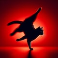 赤と青の背景と猫