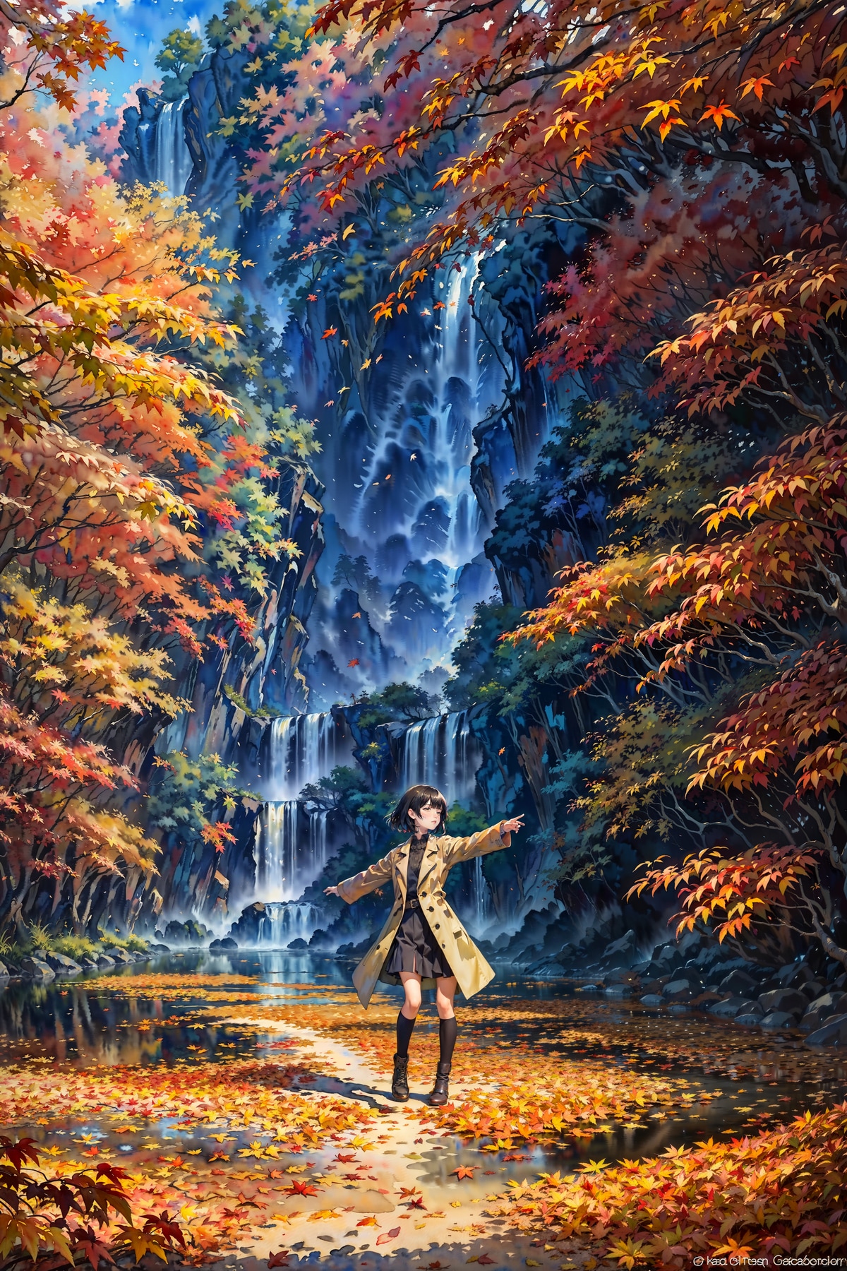 秋の景色はまだまだと言う感じですが、ちょっと秋景色をカッコ良く作ってみたかったのでひと足早いですが紅葉と岩肌を流れる滝をイメージしてみました😊