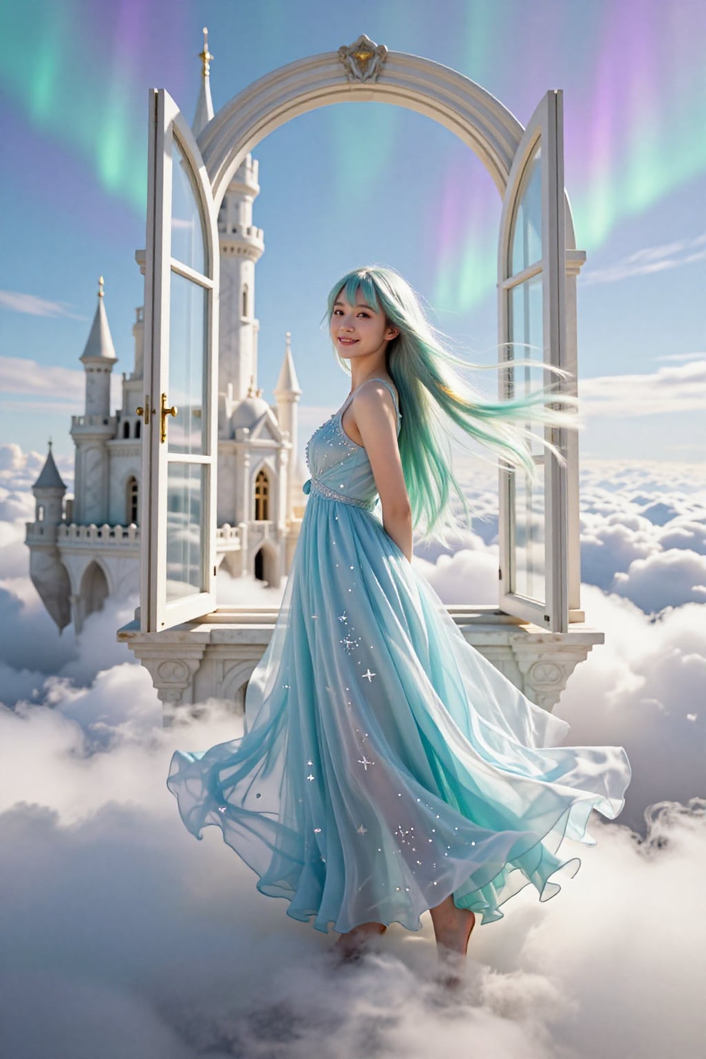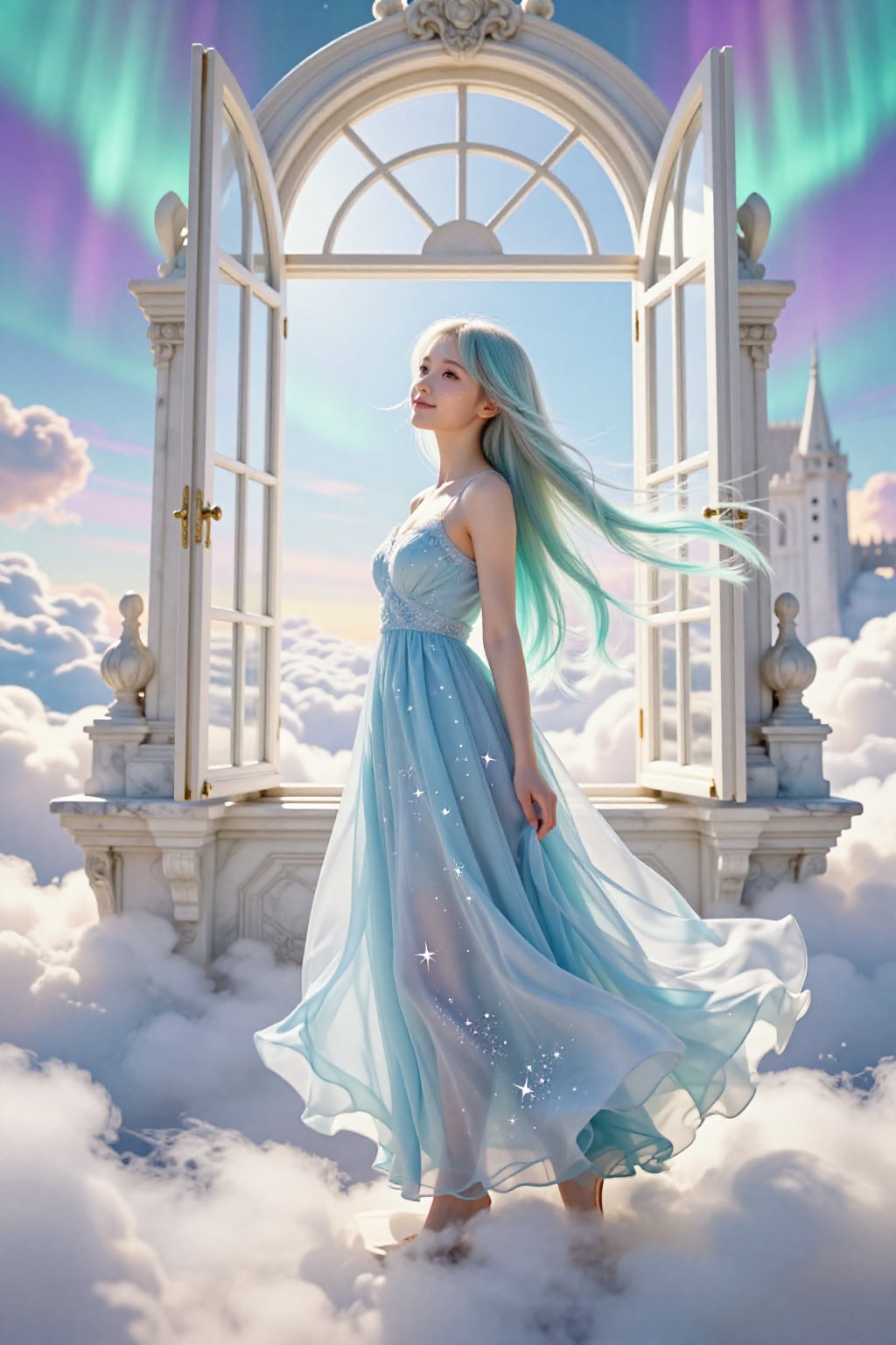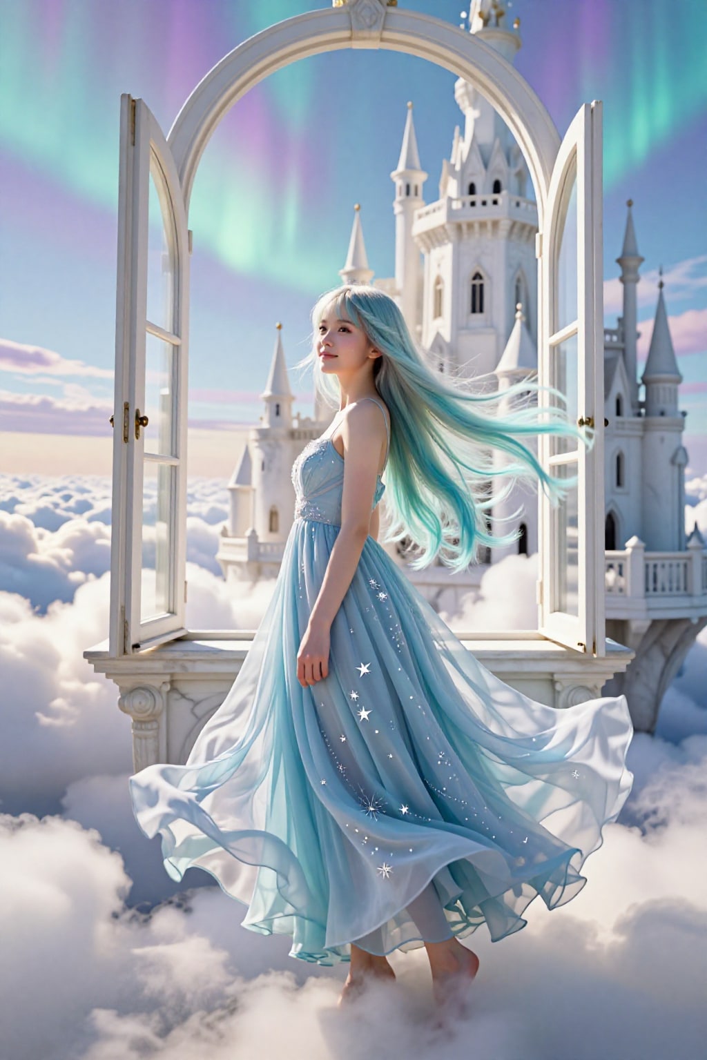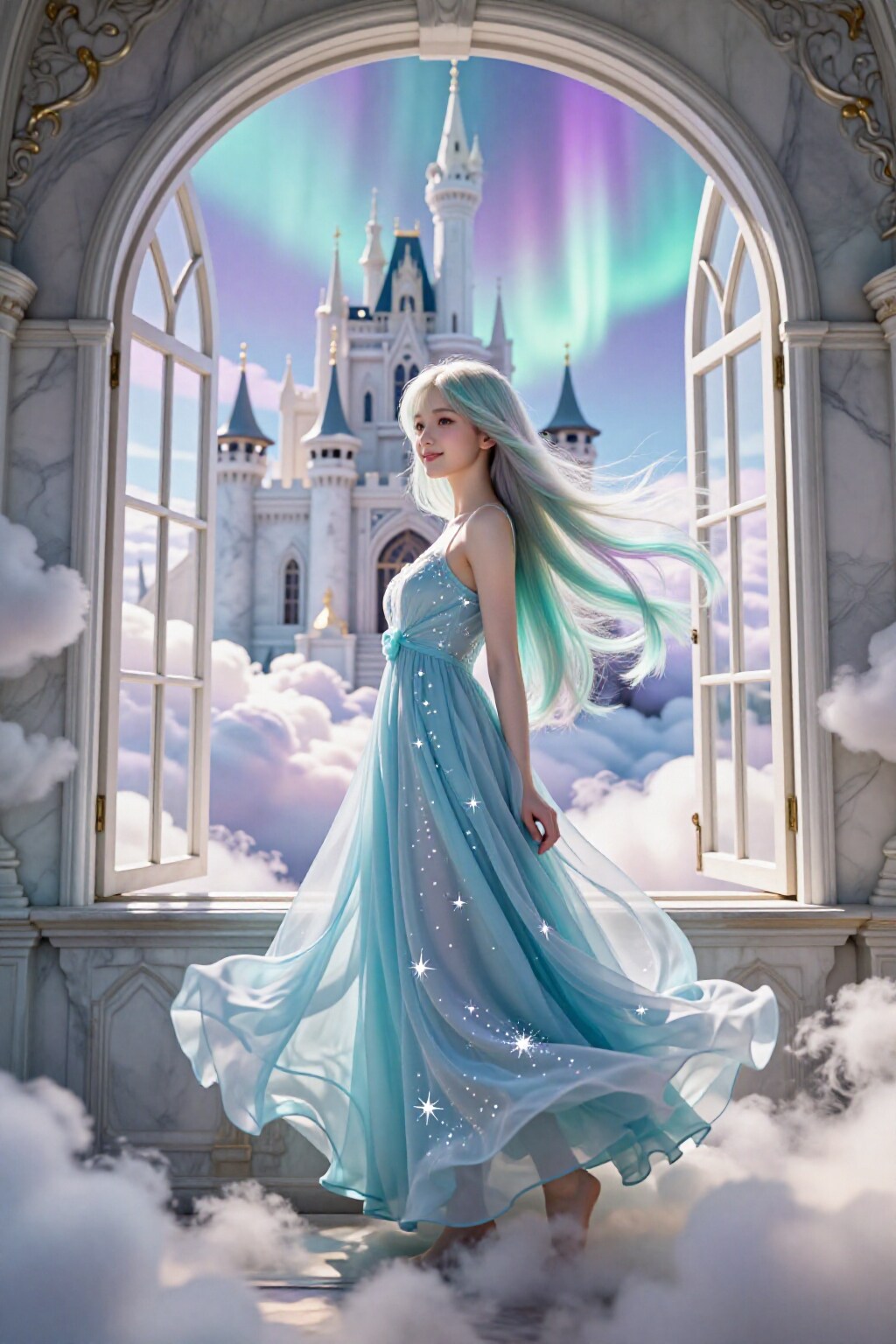 オーロラの窓辺で、風に髪を預けて