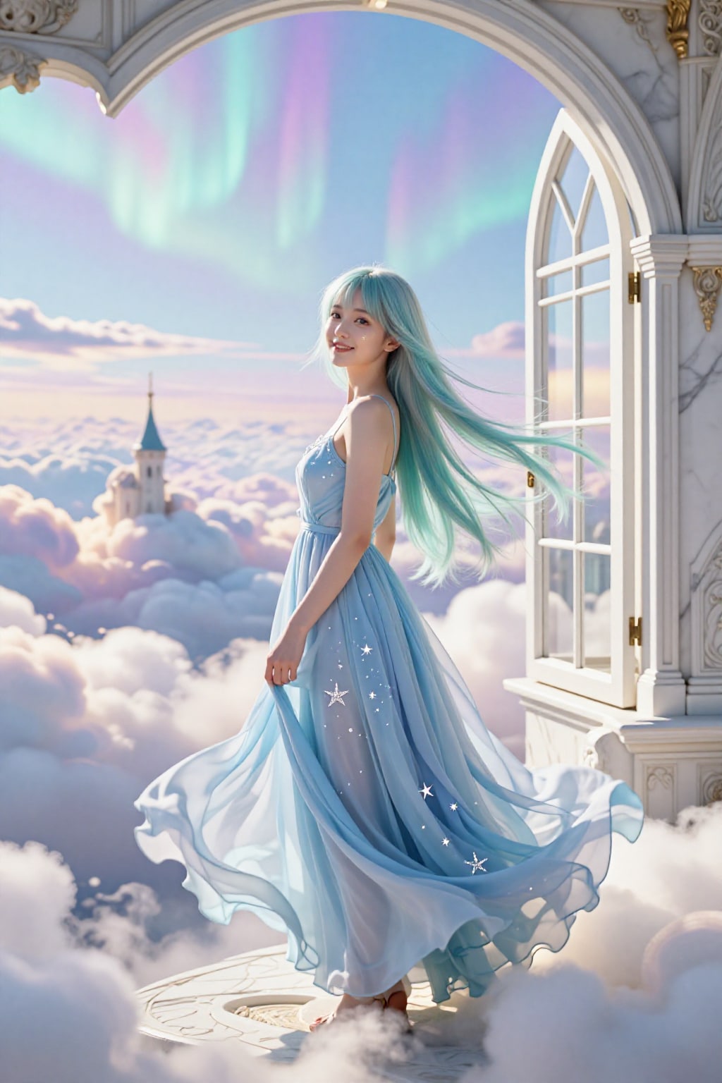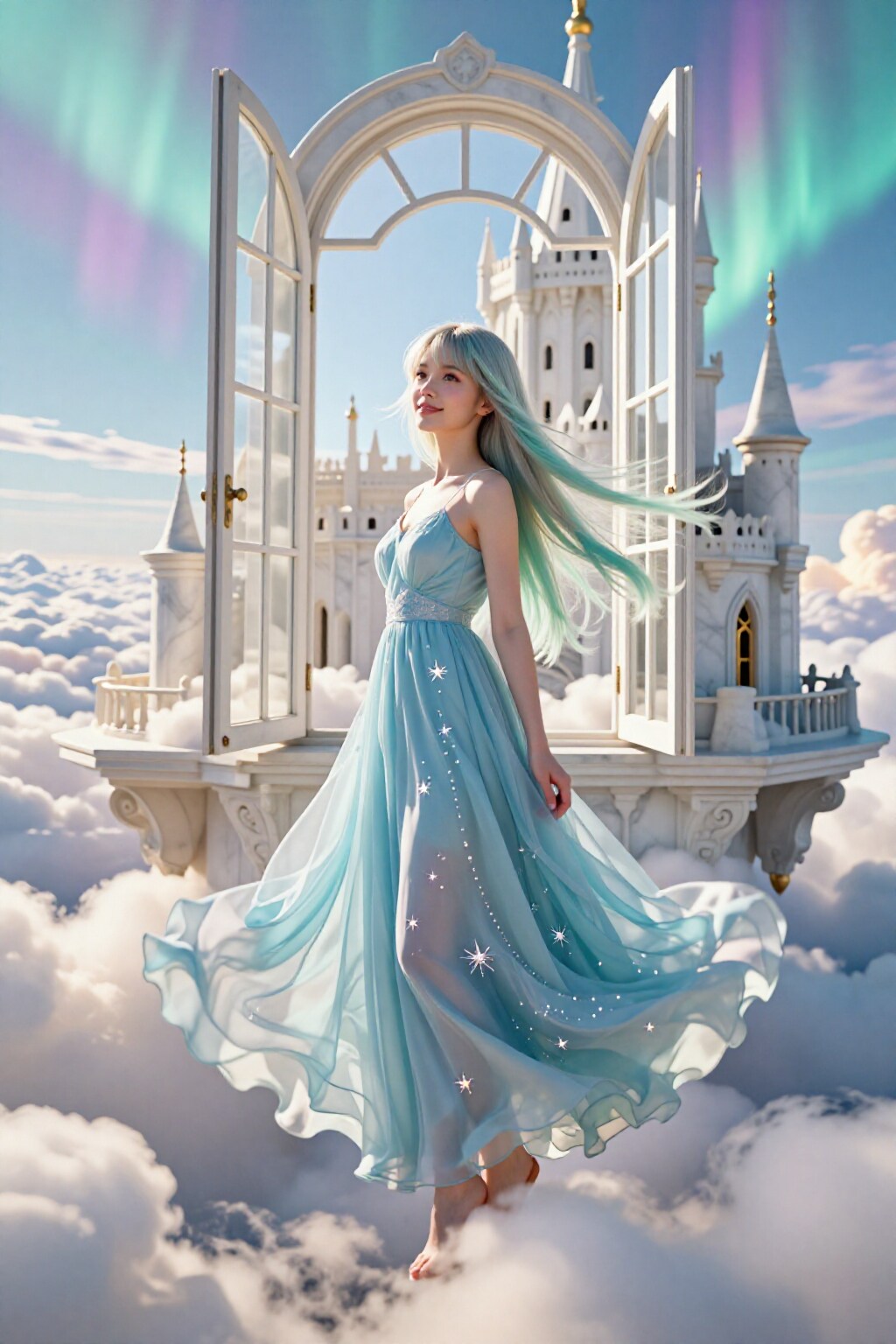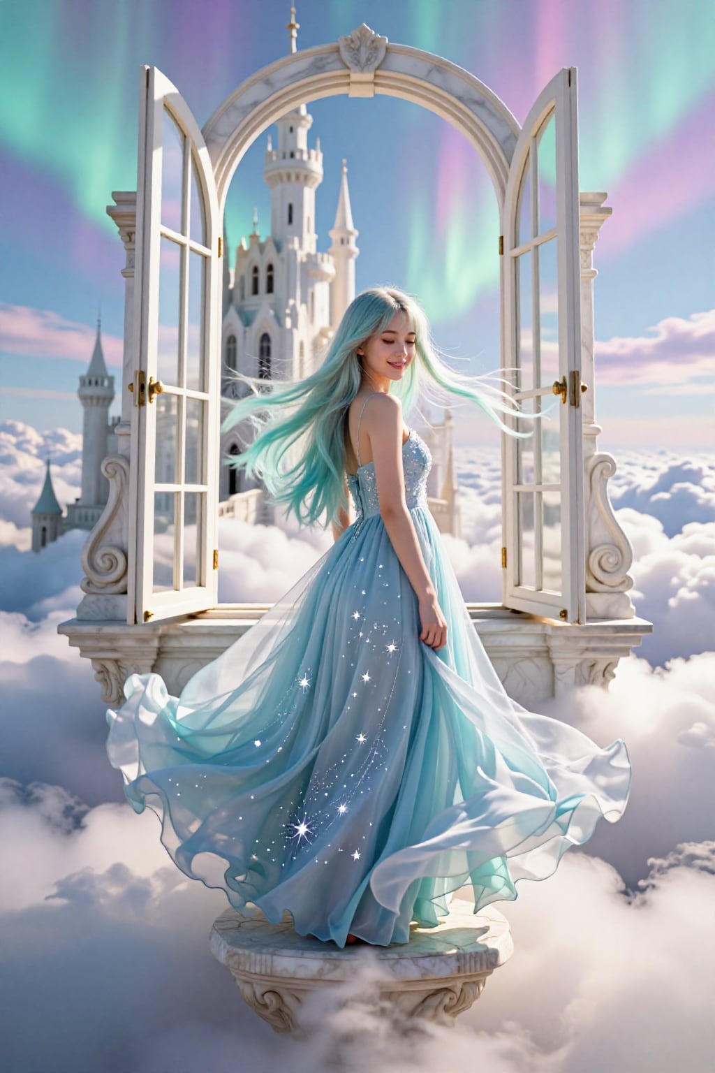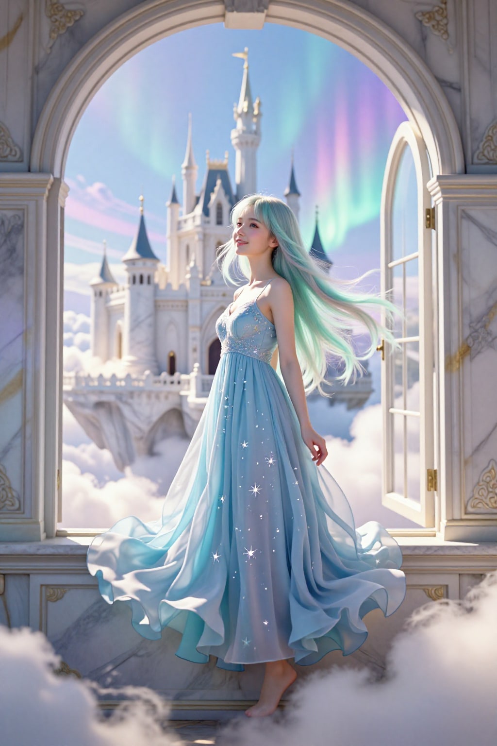 オーロラの窓辺で、風に髪を預けて