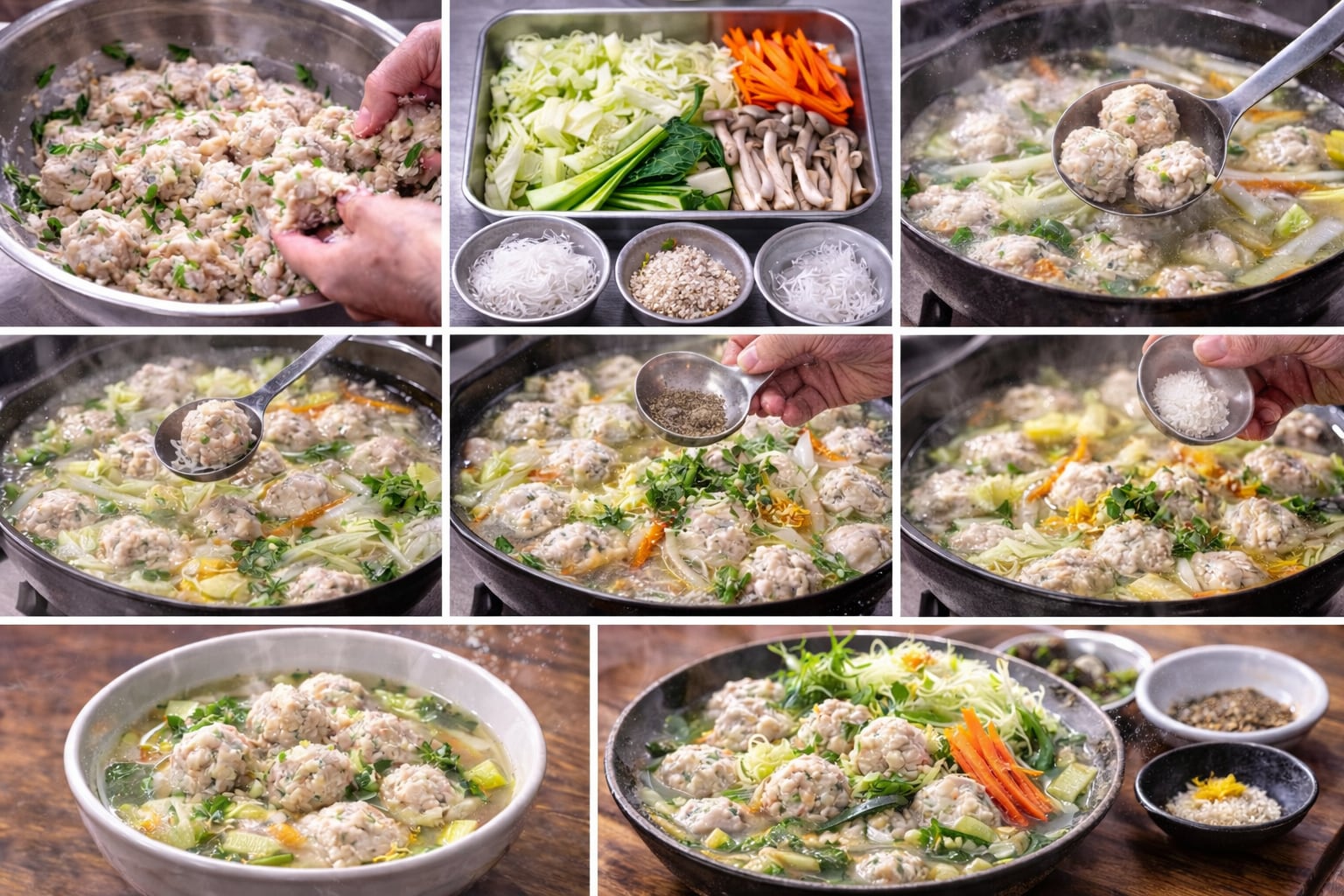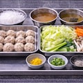 木のテーブルに置かれた瞬間、湯気の匂いが“軽い”。揚げ物の香ばしさのように強く押してこないのに、鶏だしの旨みが鼻の奥でふわりと広がる。澄んだスープに、白い鶏団子が浮かび、春雨がつるりと透けて見える。こういう定食は、食べる前から胃が落ち着く。
