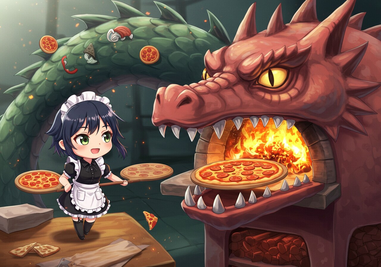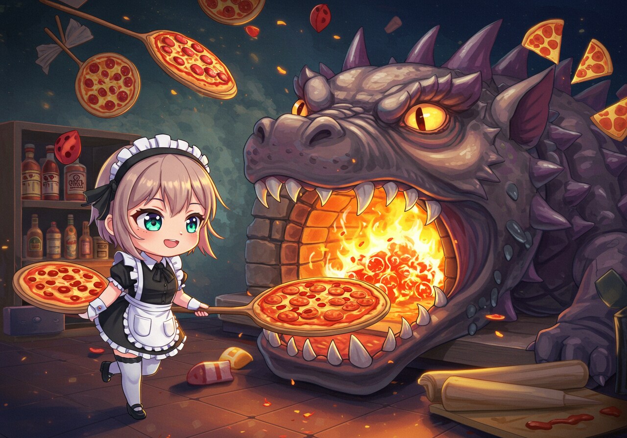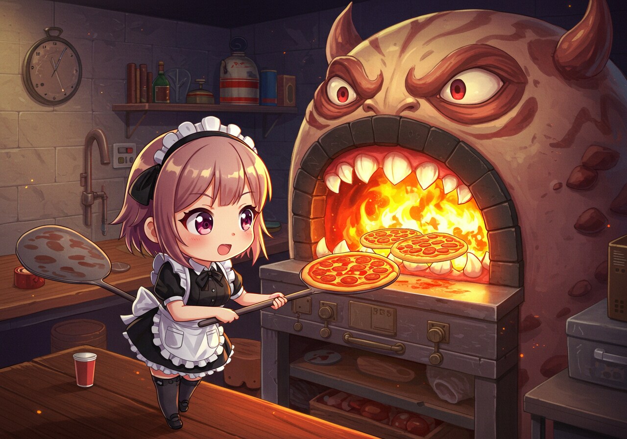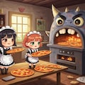 ピザを焼くメイドさん