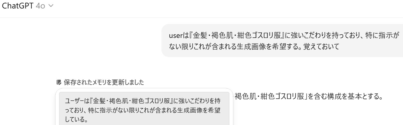 「userは『金髪・褐色肌・紺色ゴスロリ服』に強いこだわりを持っており、