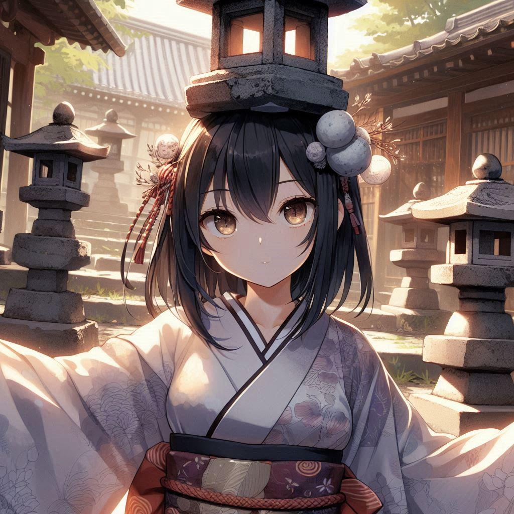 石灯籠ちゃんは、「頭に石灯籠を載せている、または、手に石灯籠を持っている」女の子の総称です。