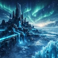 音のない永久凍土の彼方に、黒曜石で築かれた魔術演算要塞が聳え立つ。氷の壁の内側では、膨大な魔導データが光の奔流となって明滅し、絶対零度の空気を青いネオンが冷たく照らし出す。排熱を防ぐための極低温冷却パイプが要塞の周囲を這い、上空には幻想的なオーロラが揺らめく。世界の記憶を保存し続けるかのような、静謐で凍てついた超科学の極致である。