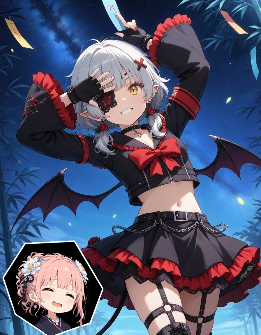 四方末子「くっくっくっ。 七夕よ、天上に座す星々よ。我が願いを聞き届けよ。 いずれ世界を覆う漆黒の支配者となる、この魂の咆哮を!