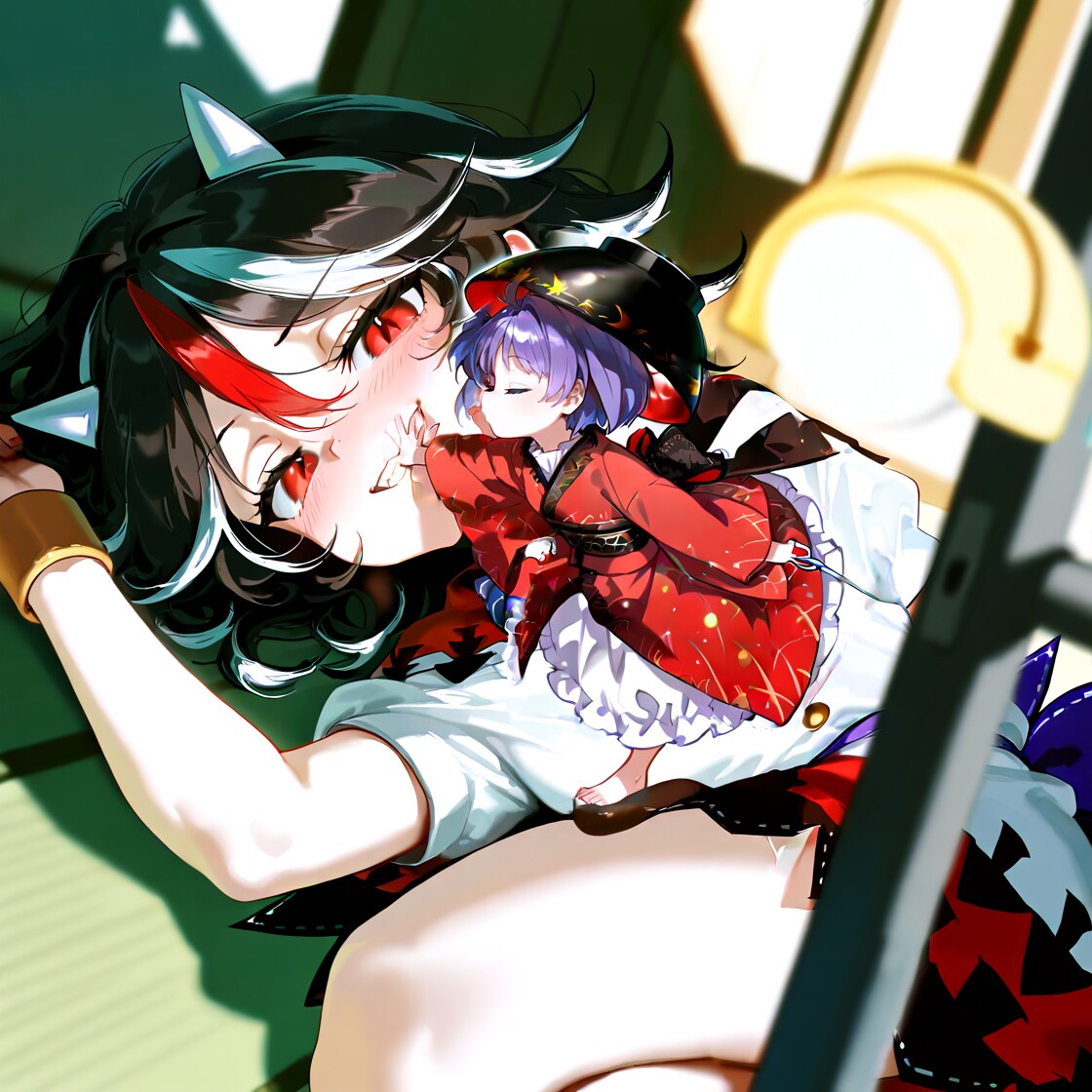 針妙丸「ふう……正邪登りは疲れるわぁ……さて、と……うーん、コイツ本当黙ってると可愛いなあ……❤」