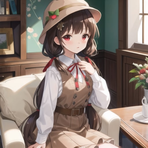 https://www.chichi-pui.com/posts/74e07c2e-ad6a-464c-b8ef-43cf1bb45907/ と同じプロンプトなのに、このモデルが描いたものは、推理小説に出てくる依頼人の令嬢のようだ。
