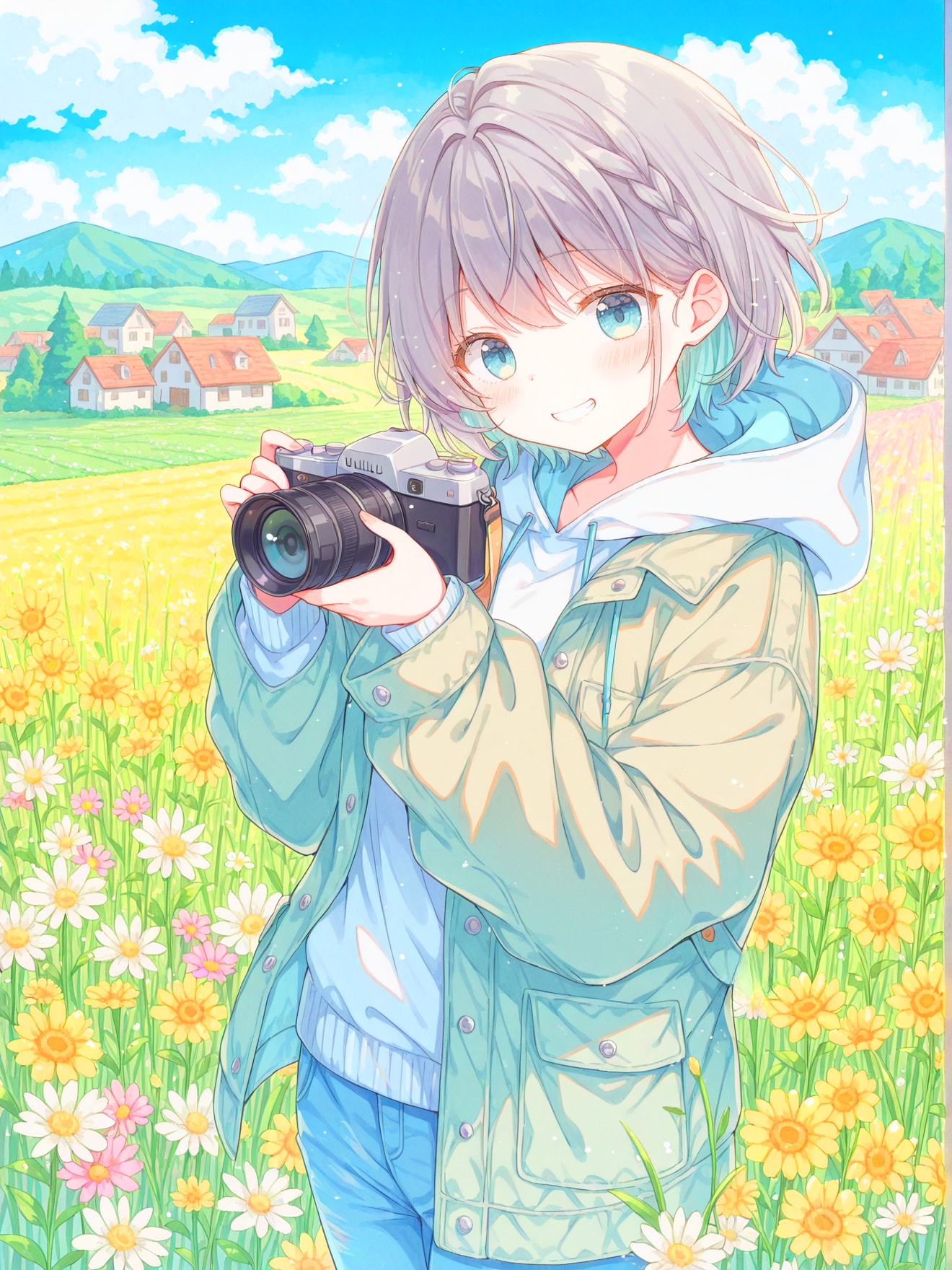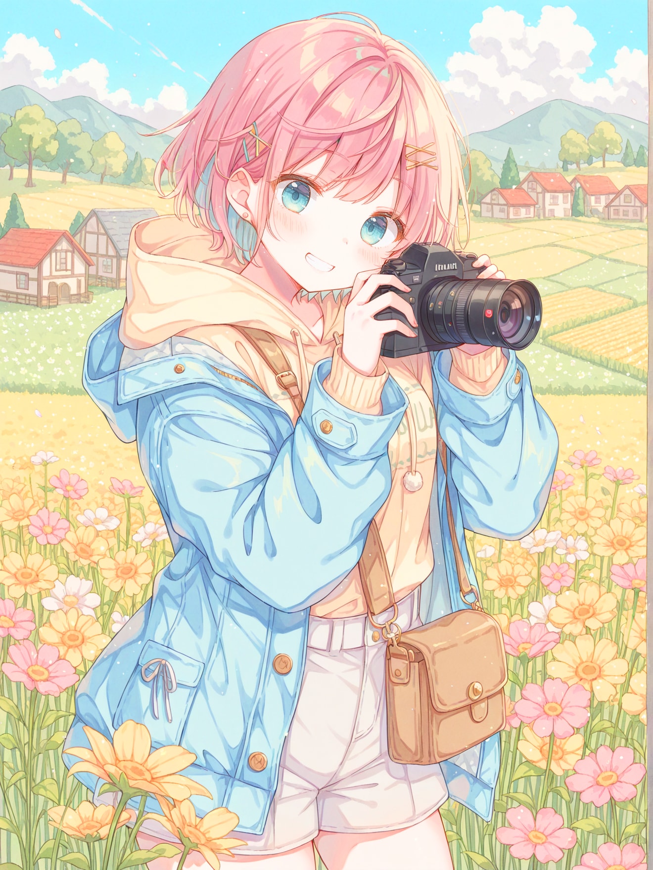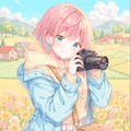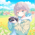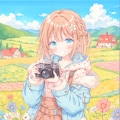 花で一杯の花畑で撮影をする女の子を作ってみました