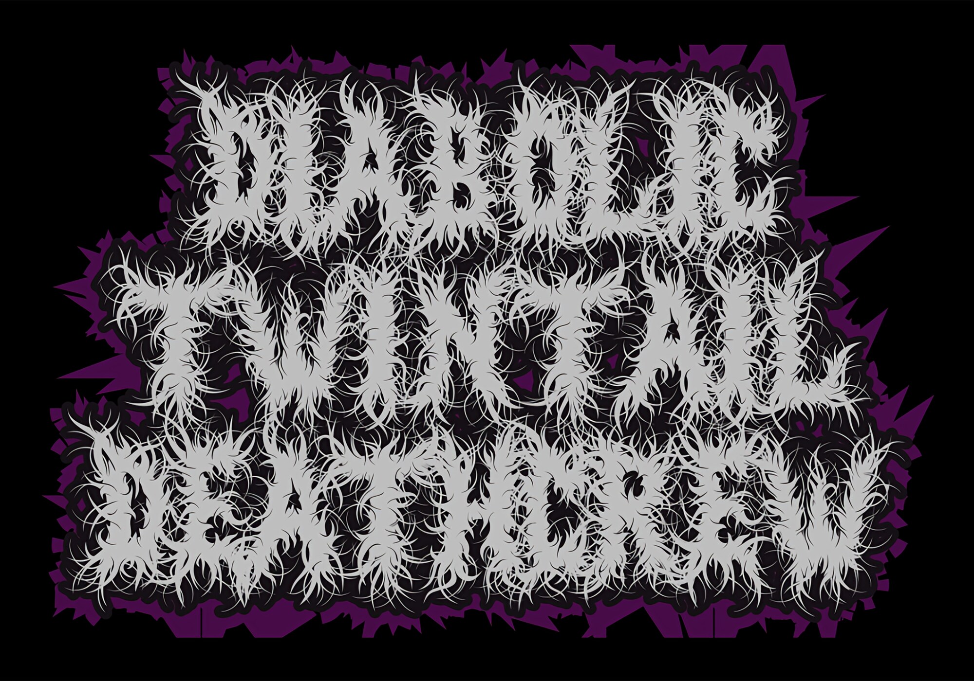 AIイラスト世界のさとみんが所属するおにゃのこバンド(1枚目)のバンドロゴぷり。なおブラックメタルバンドのロゴは、何と書いてあるかを読めちゃうのはダサイとされてる