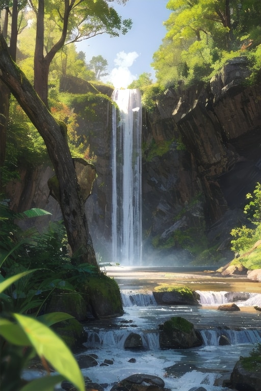 滝のある雄大な自然のイラストですねw