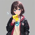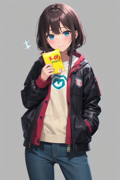 simple jacket(背景?), holding jacket, girl muffled jacket , laugh effect, love mark,