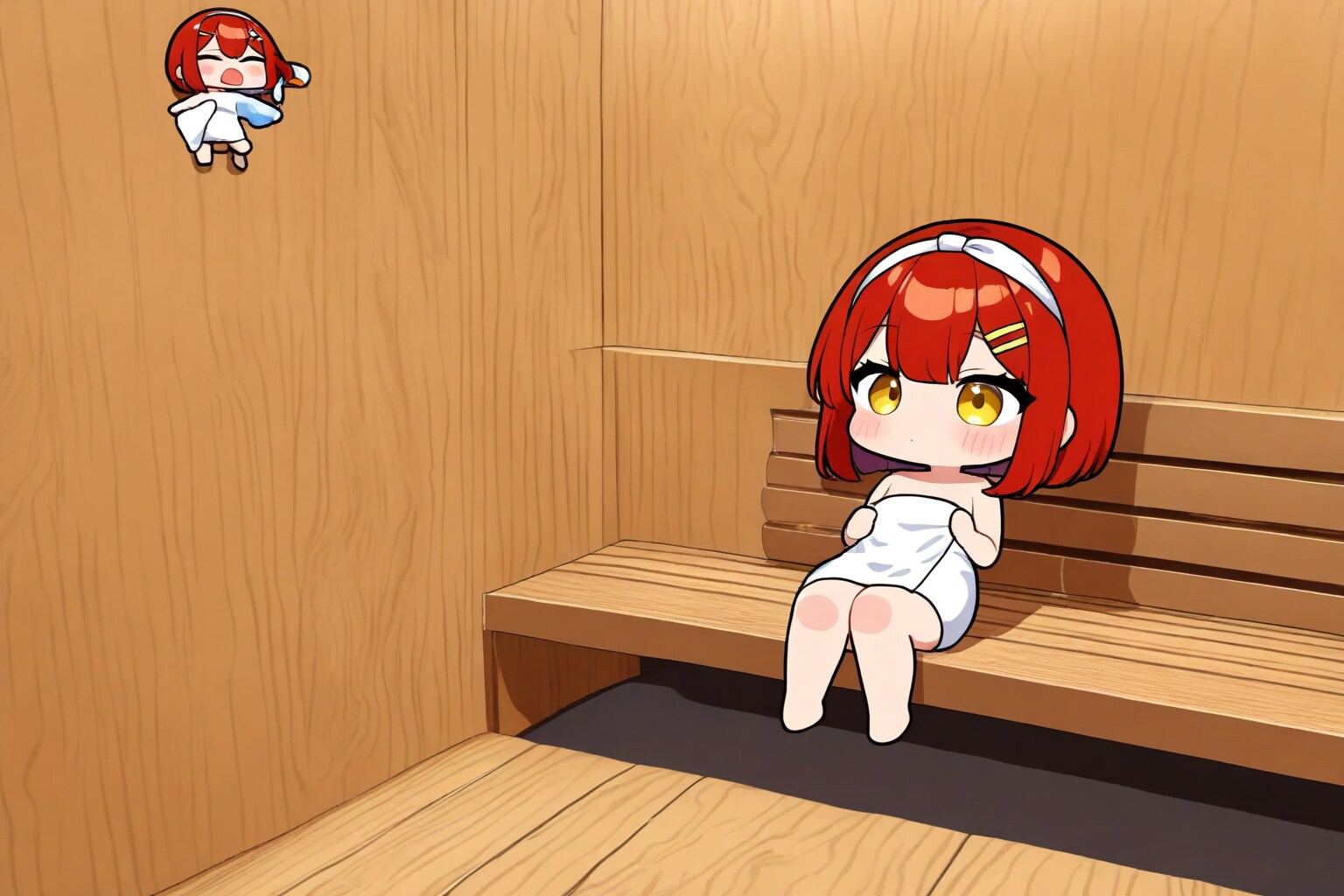 ししょちゃん「ええ、そうよ。その証拠に・・・・・・・・・・今サウナに、赤髪ちゃんズの子が一匹入っているでしょう?」