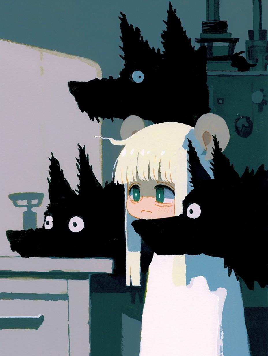 森の中のお茶会をテーマに、はちみつティーを飲む、くまガールのイメージ☕