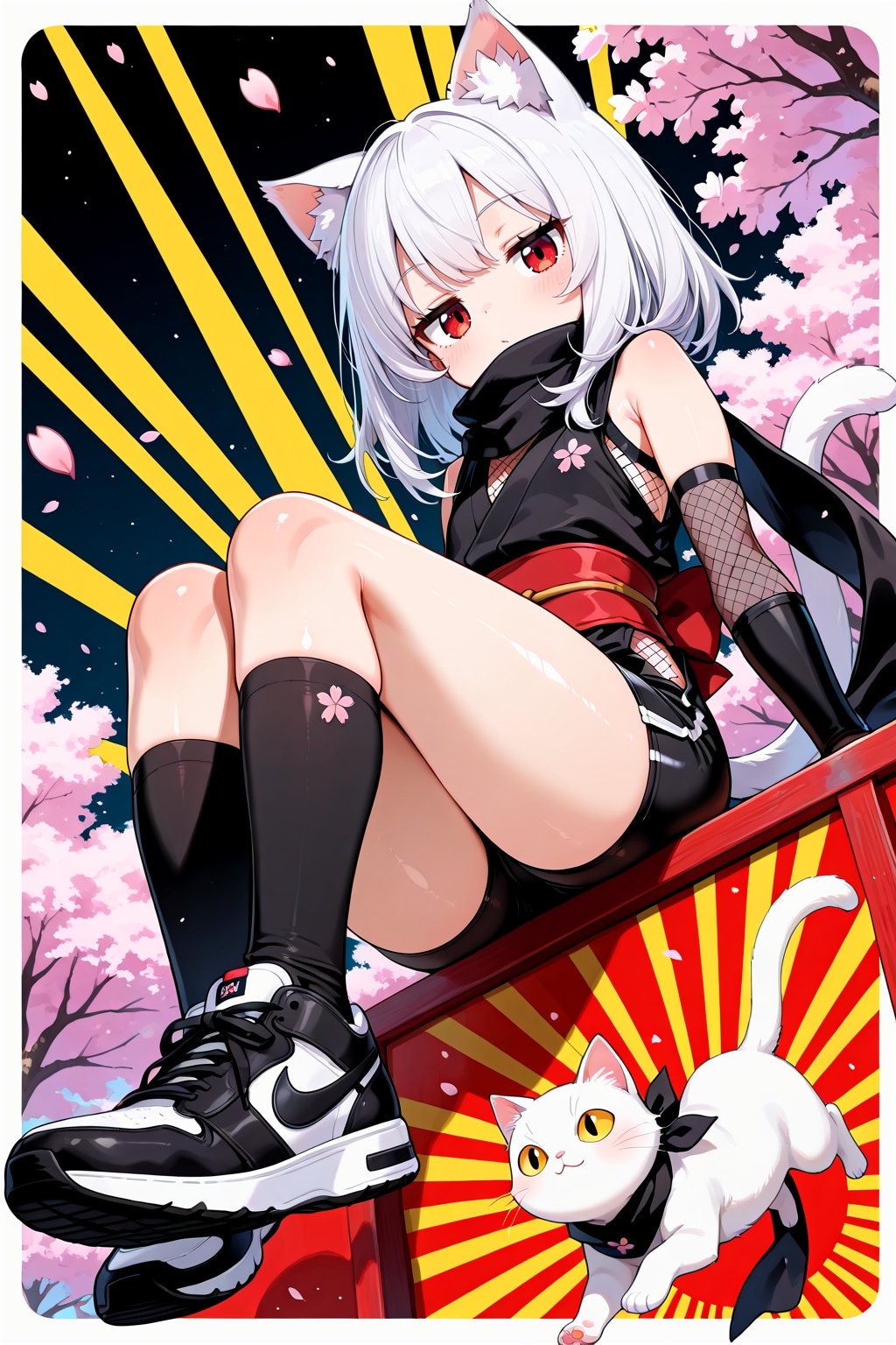 jacket partially removed, heart in eye, burnt clothes, holding fishing rod, kanji, doujin cover, pentagram, tape gag, adjusting headwear, red socks, friends, cloud print, coke-bottle glasses, oral invitation, competition school swimsuit, barbell piercing, gradient legwear, prisoner, blood on breasts, wind chime, carrying over shoulder, tape measure, flaming weapon