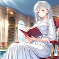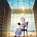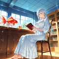 私設図書館、あるいは図書室みたいなところで読書中の姫様。金魚が宙を泳いでたりしますが、そういう種類と思いねぇ。