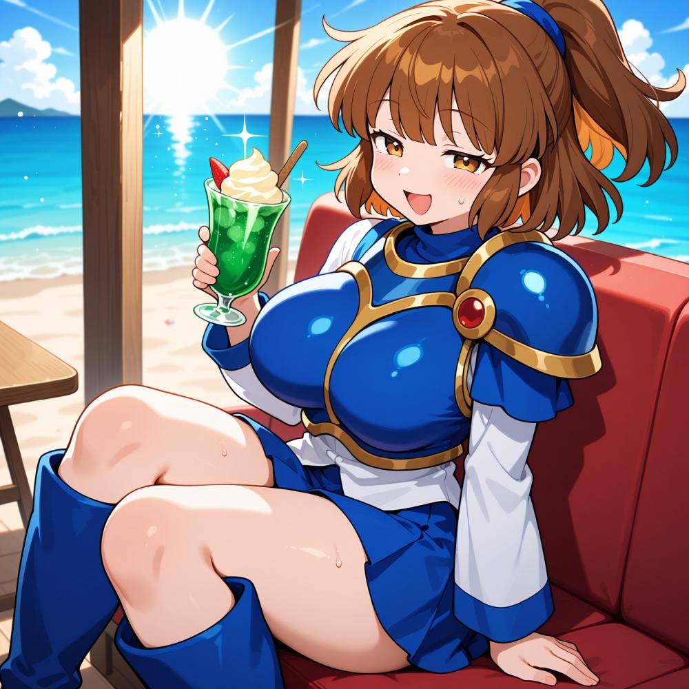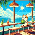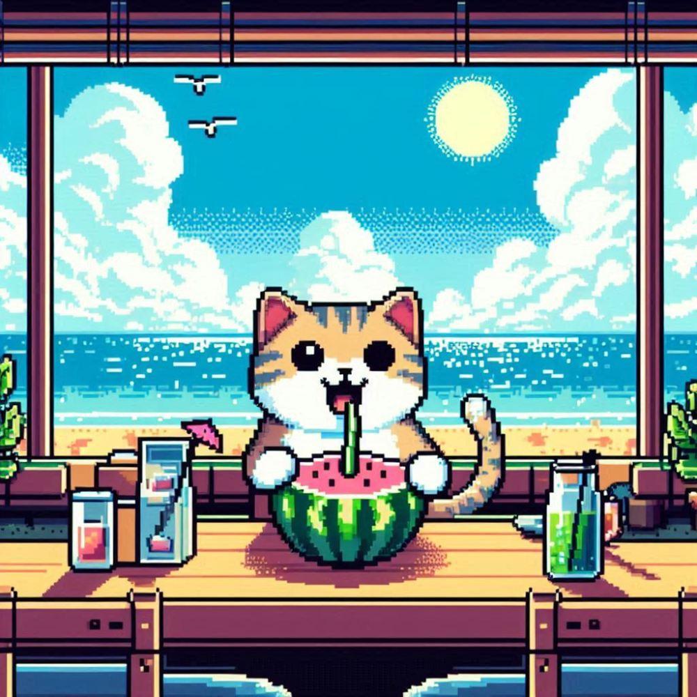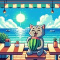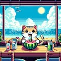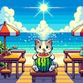 クリームソーダ食べる人妻&ドット絵猫