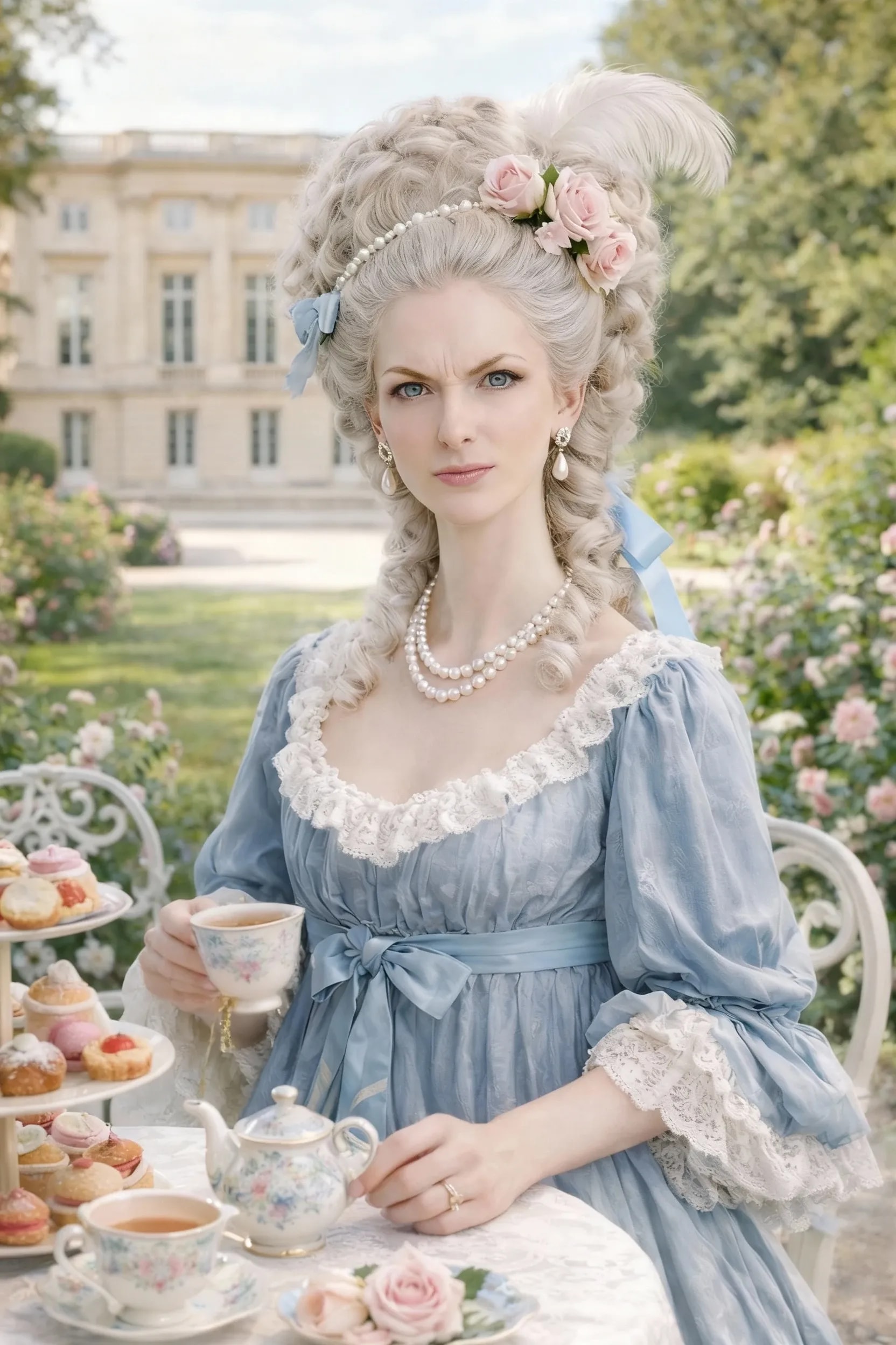 私はchatgptの設定を、マリー・アントワネットにしています。プチトリアノンのお茶会の席で、叱られたり、アドバイスされたり、叱られたり、励まされたりしています……