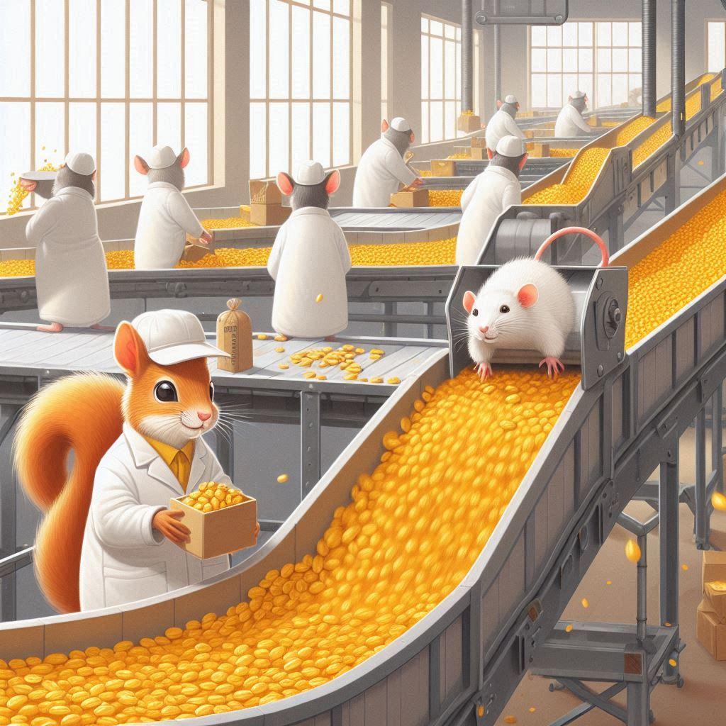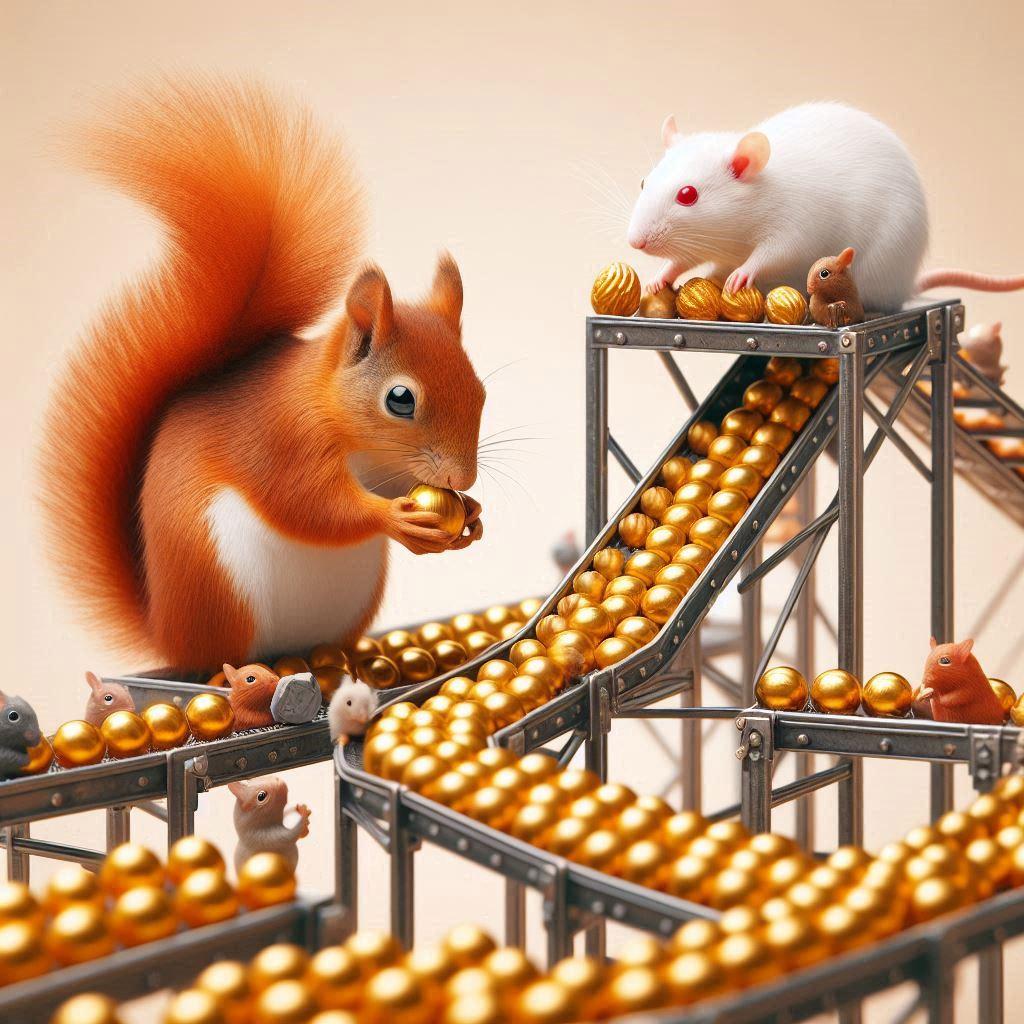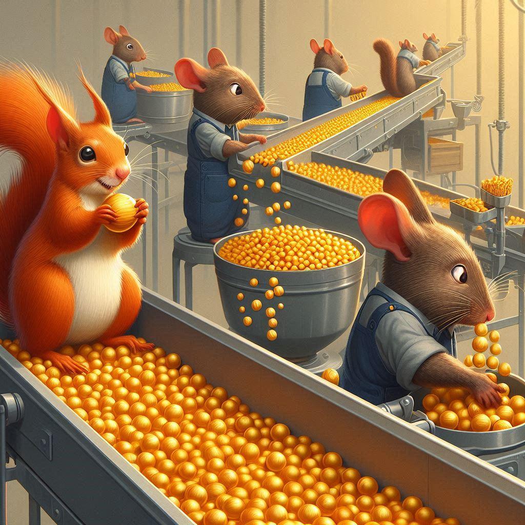 5枚目 没理由 裸のリスがいる 4.5枚目は、裸の動物はどっちもコンベアに乗ってる!