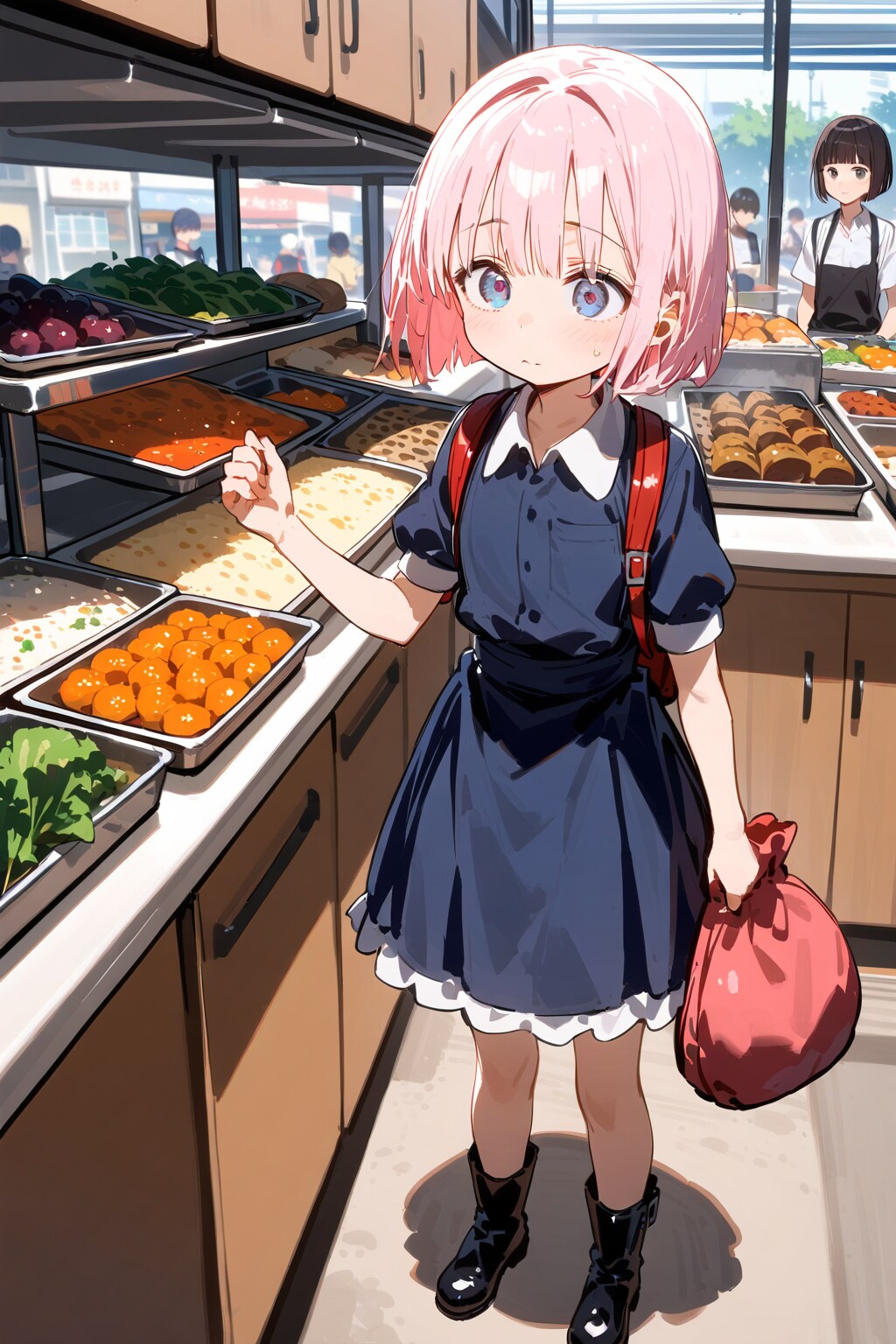 戸惑いつつも大人達に敵意はないことを察した彼は、言われた通りメイド服のような仕事着に着替え、食料が豊富なフラットランドへと訪れ、現地の食堂で働きながら食料を少しずつ確保・仕入れていく。