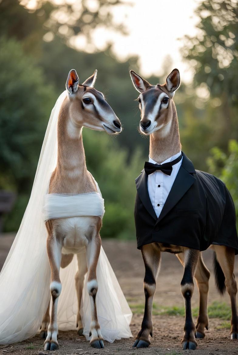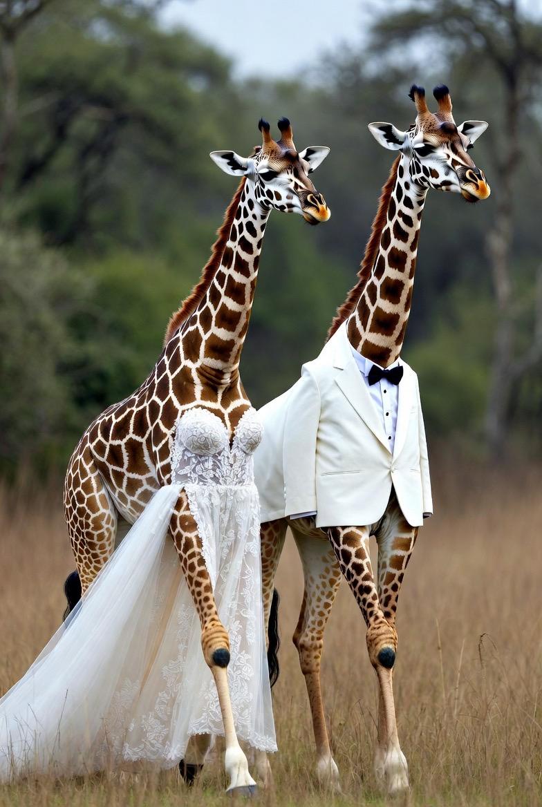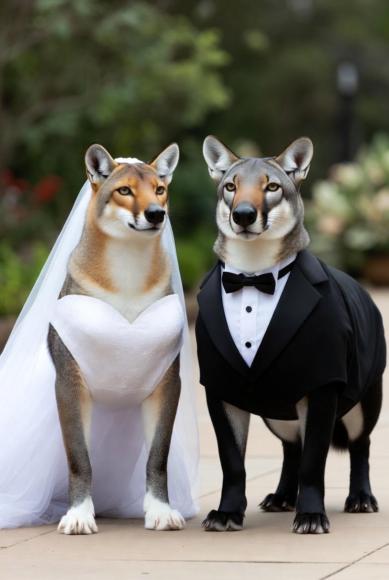 どうしてもウェディングドレスやタキシードスーツから人の手が出てきてしまったり、2足で絶対に歩かないはずの動物がまるで人間かのように擬人化されてしまうところがだいぶあって、動物本来の歩き方や行動に準じた感じで生成するのに苦労しました。