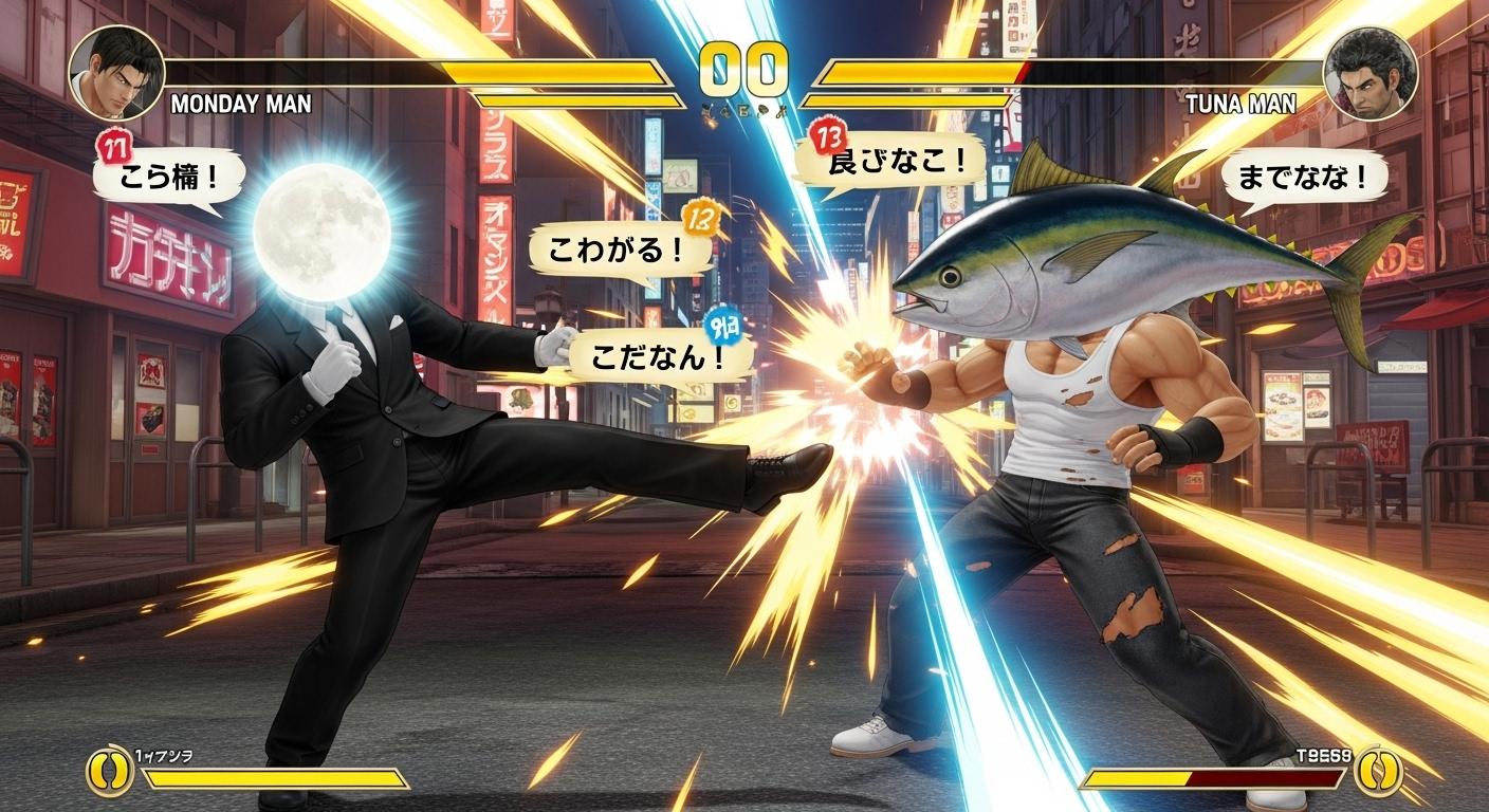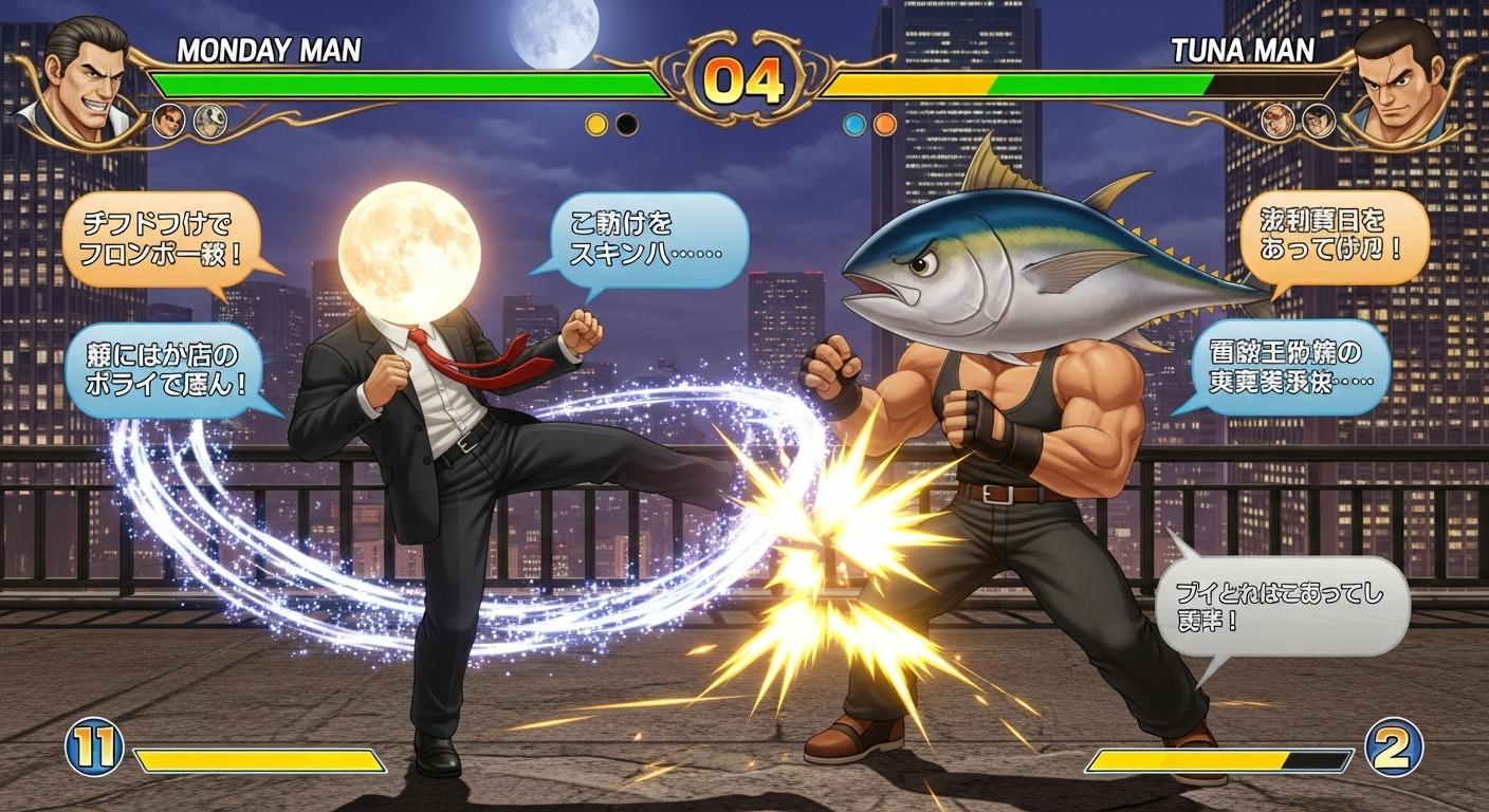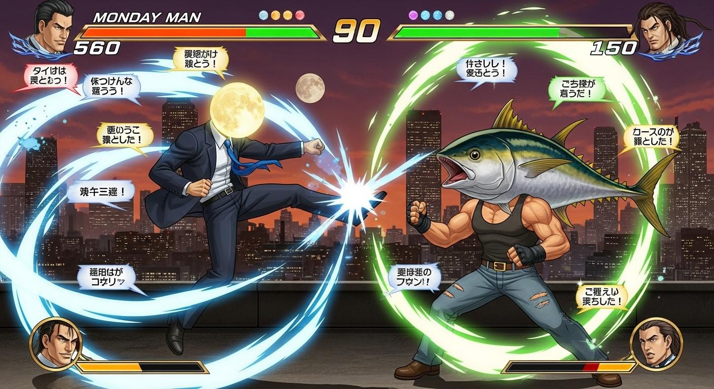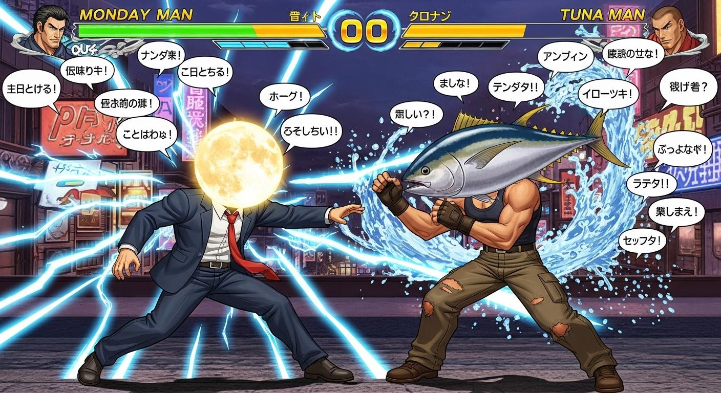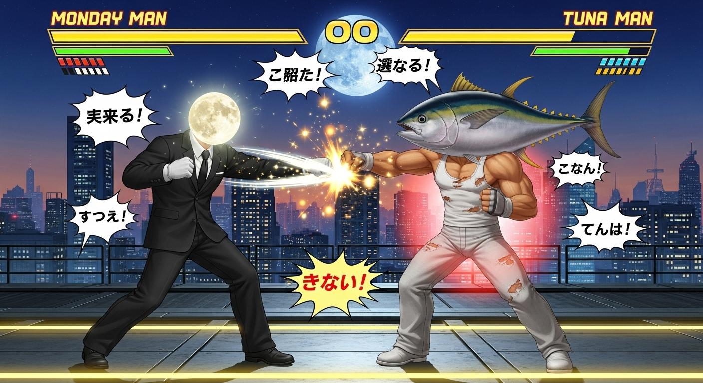 マグロでタンクトップ姿の男性(🐟)でTUNA MANと出てきてすごーいっ