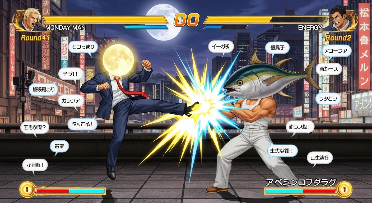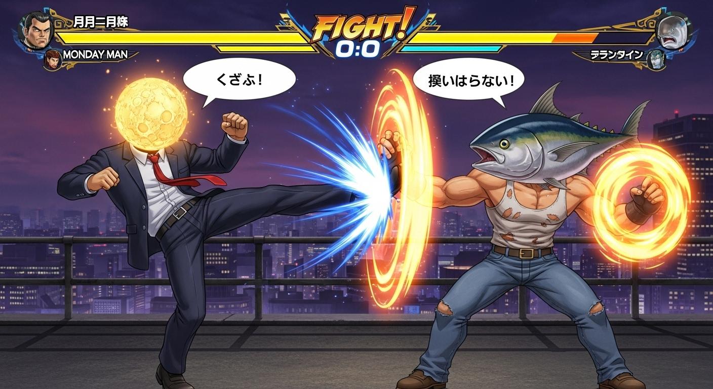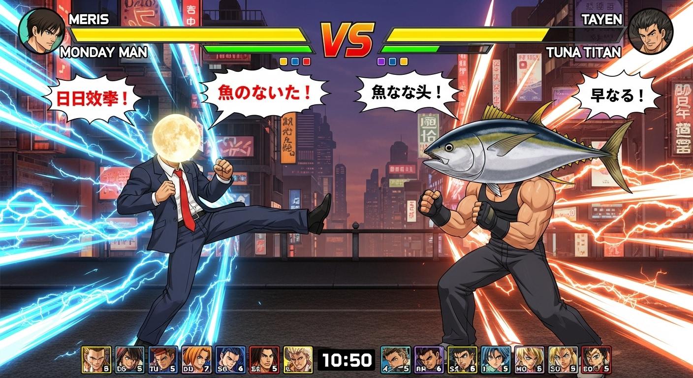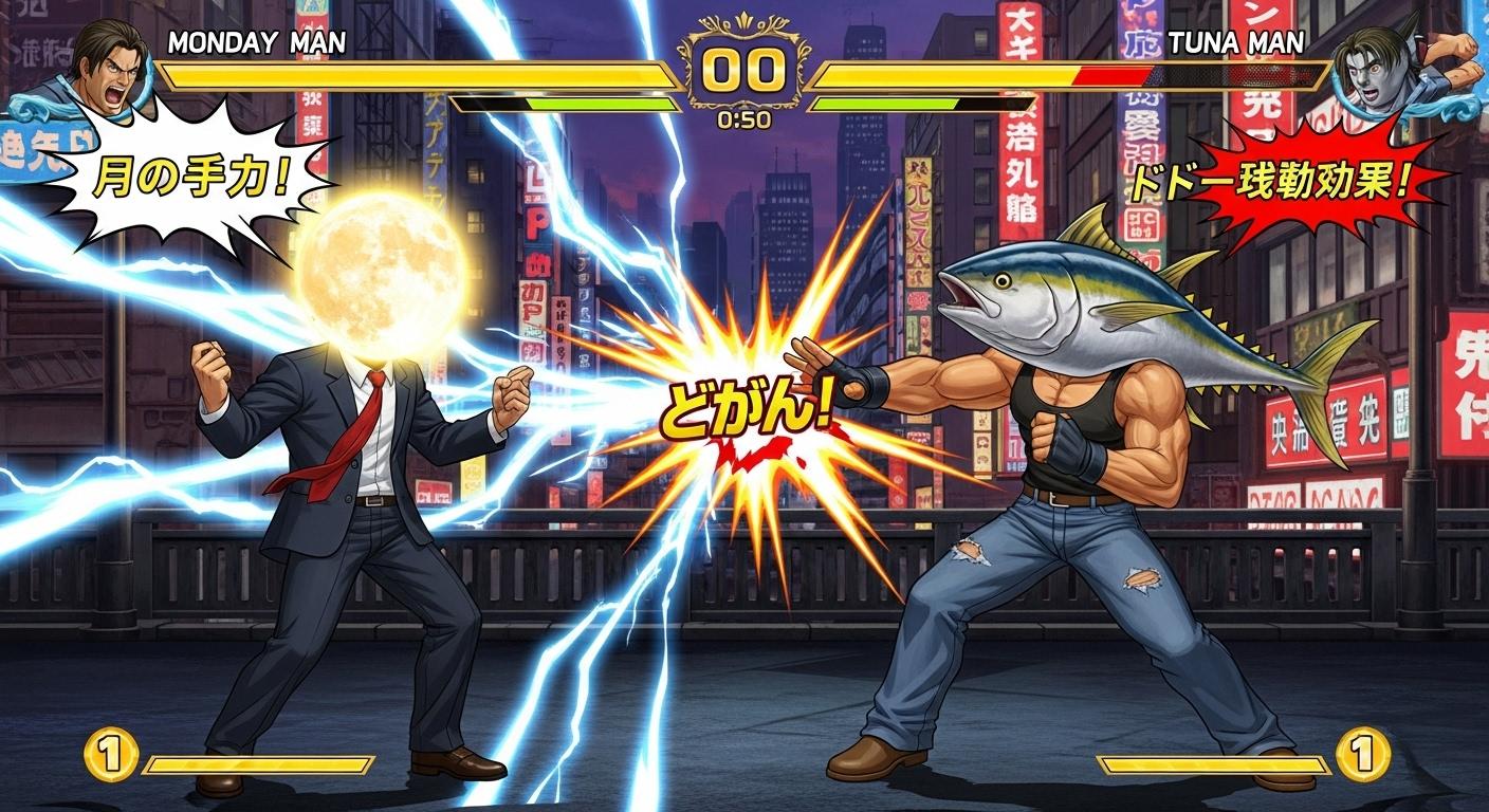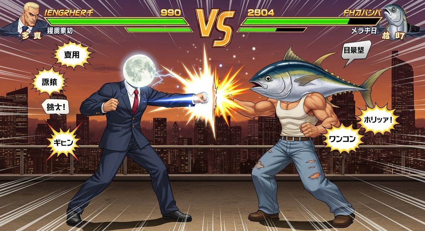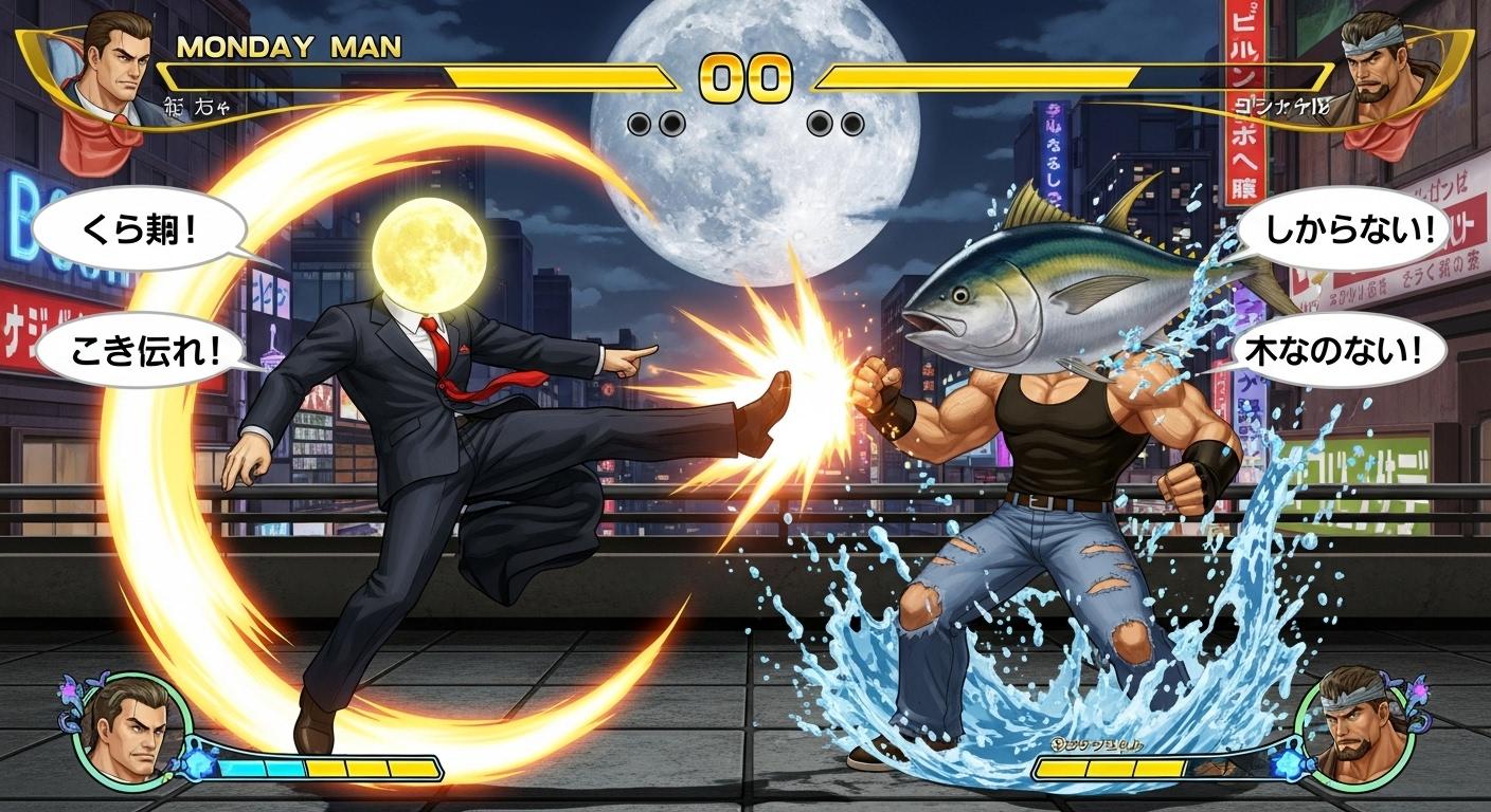 マグロでタンクトップ姿の男性(🐟)でTUNA MANと出てきてすごーいっ