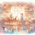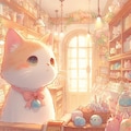 森の中で店番をするネコさんを生成してみました。