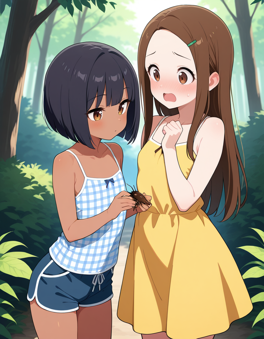 虫取りに来た2人ですが、にこは虫が苦手なようです…