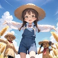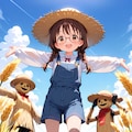 委員長ちゃんやポーズや服装では大きな問題はなかったんですが、問題は田んぼが色々プロンプトを試してみてもうまく出ないこと(外部生成では案山子を作ると関連で稲穂垂れる田んぼになることも多いのですが)。そこでAI生成でより学習されてるであろう「麦畑(wheat field)」で代用してみました。多少は田んぼと違う面もあるようですが言わなければ多分気づかれないレベルでそっくりかと(苦笑)。