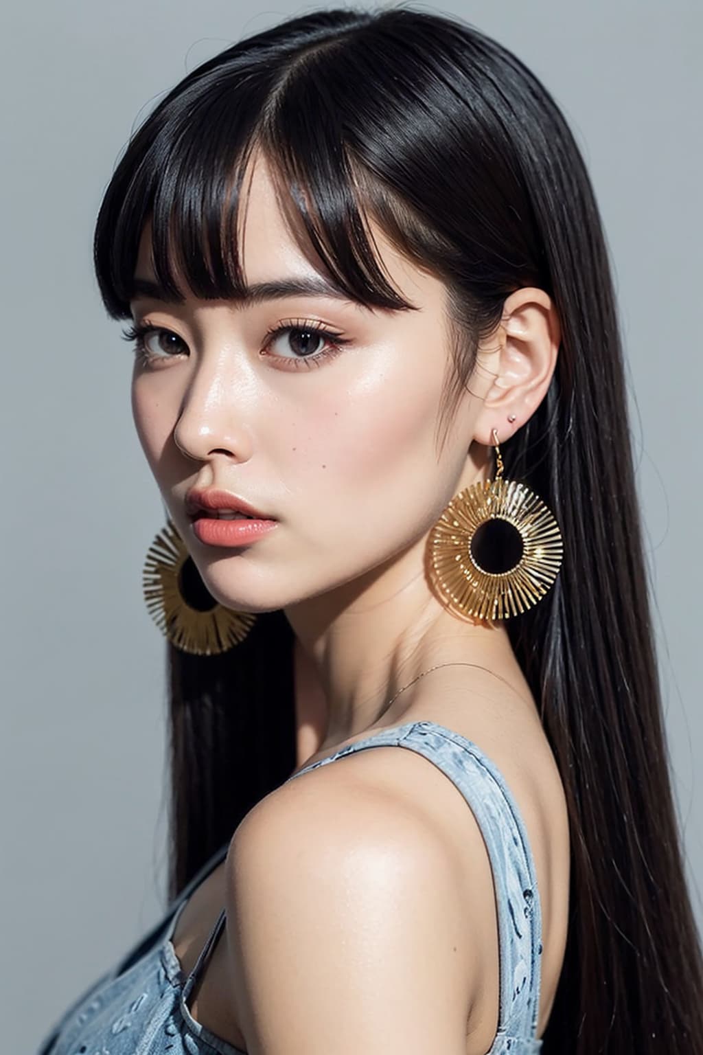 衣装はAIにお任せですが、アクセントとして大き目のイヤリングを付けました。