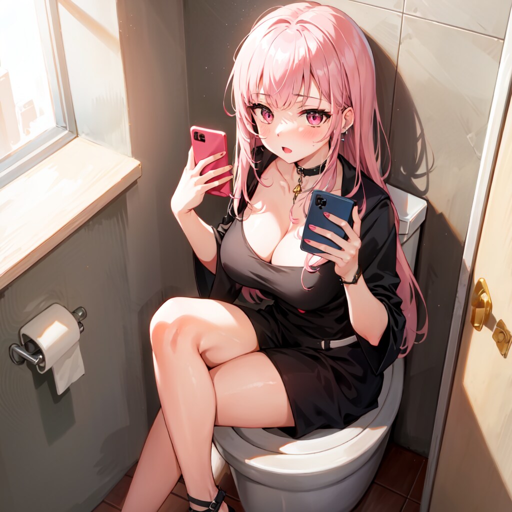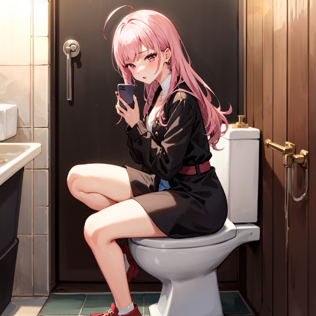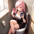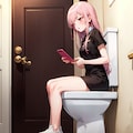 トイレに座る森カリオペ。2年前のイラストです。品質向上呪文を一切入れていない…w