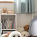 自宅の女の子の部屋でアザラシの赤ちゃんと仔猫が寄り添いまぶたを閉じて一緒に寝ている。