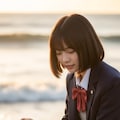 真っ白なアザラシの赤ちゃんと遊ぶ日本人の可愛い女子中学生のリアルフォトを作って。