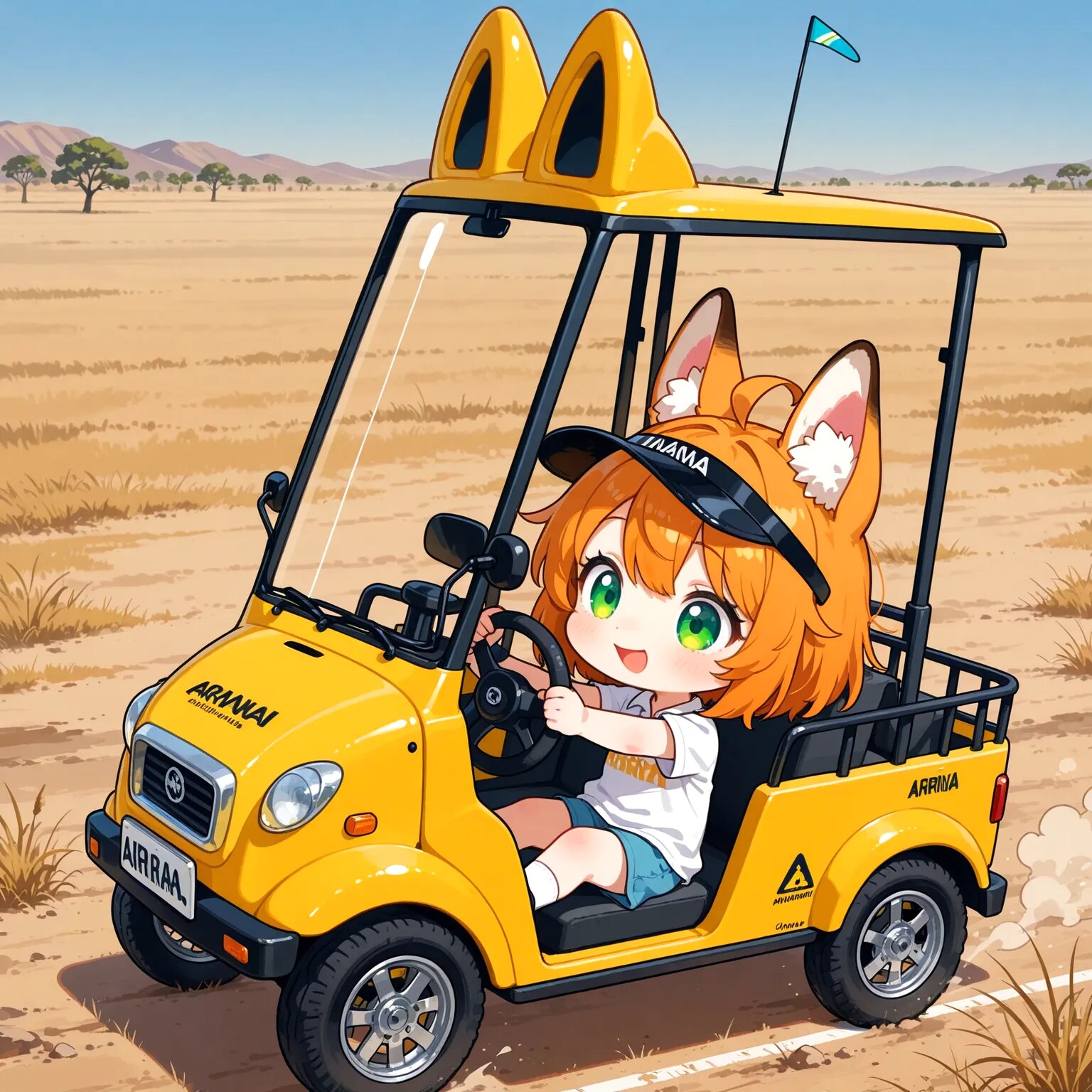 ゴルフカートにケモミミがつく確率は低すぎる(たぶん10%以下?)…結局、生成された画像にケモミミを描いて、i2i処理に回しました…