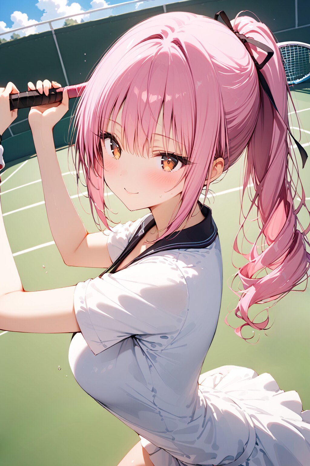 ピンク色の髪をリボンで束ねた少女——桜井さくらは、弾むようにテニスボールを打ち返していた。