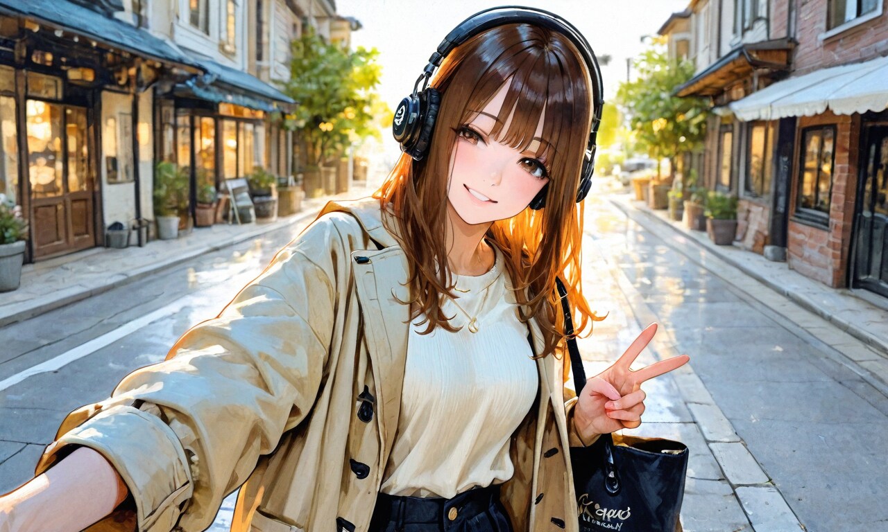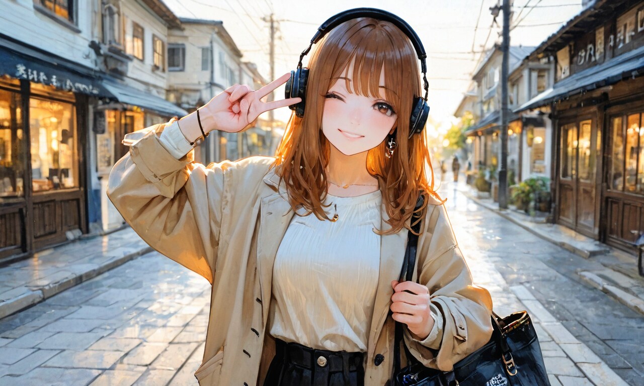 街中でピースサイン