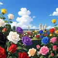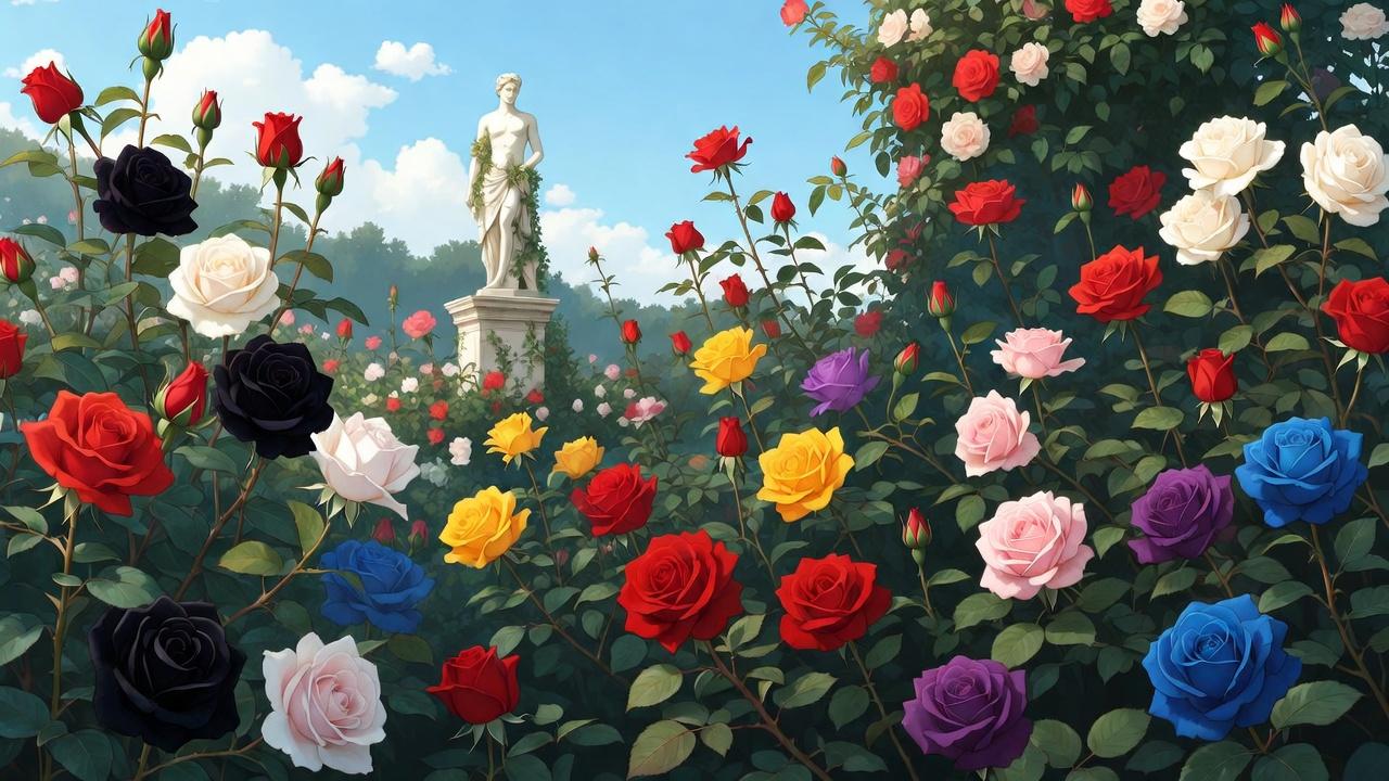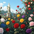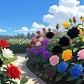 色々な色の薔薇が咲いた庭園を作らせてもらいました。
